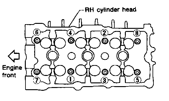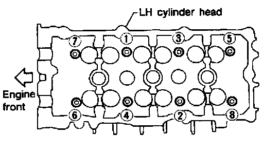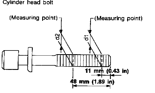 CAUTION: Cylinder head bolts are tightened by using the plastic zone (Torque-to-yeild) tightening method. Whenever the size difference between d1 and d2 exceeds the limit, replace them with new ones.