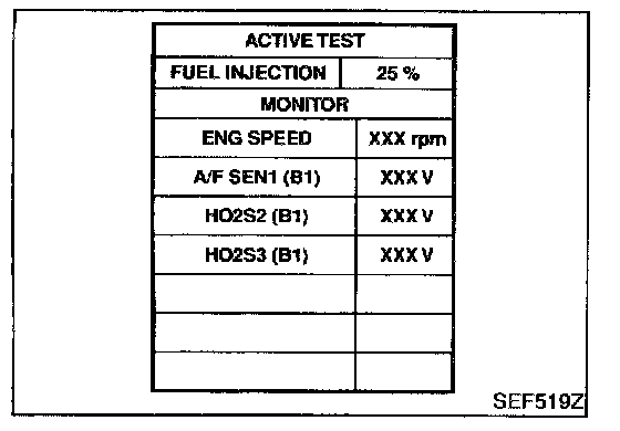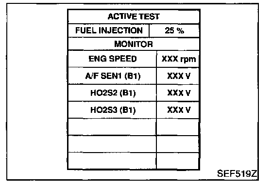 3. Select "FUEL INJECTION" in "ACTIVE TEST" mode, and select "HO2S3 (B1)" as the monitor item with CONSULT-II.