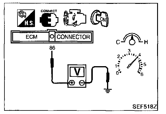 3. Set voltmeter probes between ECM terminals 86 (HO2S2 signal) and engine ground.