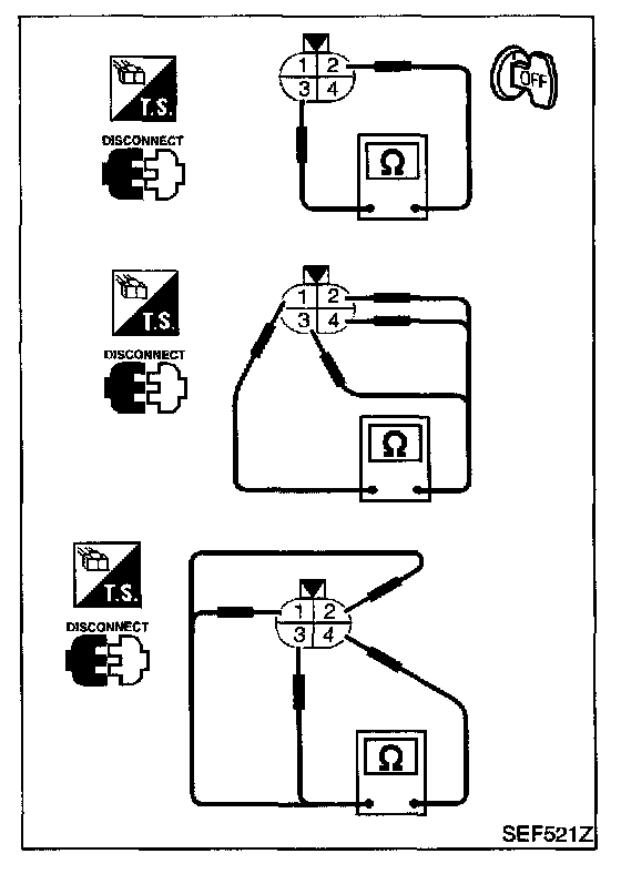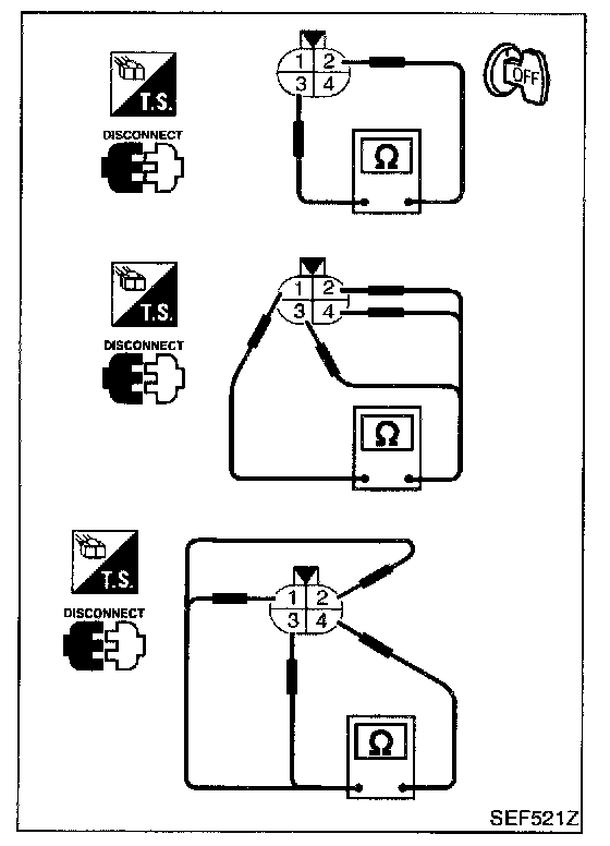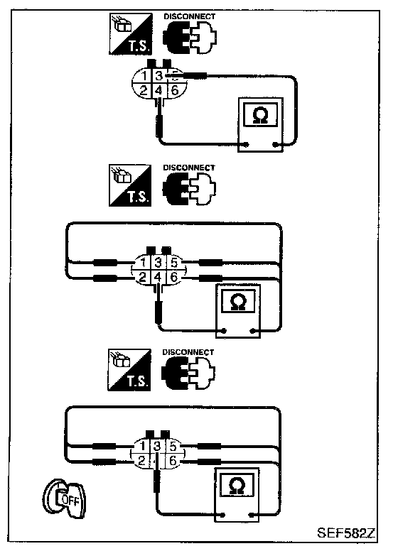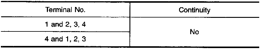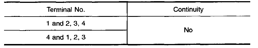 Check continuity between terminals 3 and 1, 2, 5, 6, terminals 4 and 1, 2, 5, 6.