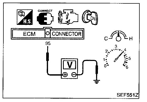 3. Set voltmeter probes between ECM terminals 95 (HO2S3 signal) and engine ground.