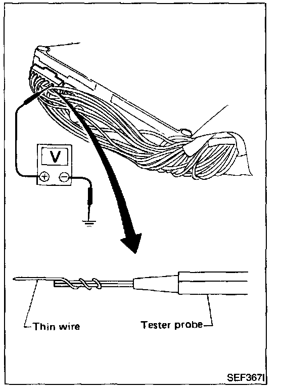 3. Perform all voltage measurements with the connector connected. Extend tester probe as shown to perform tests easily.