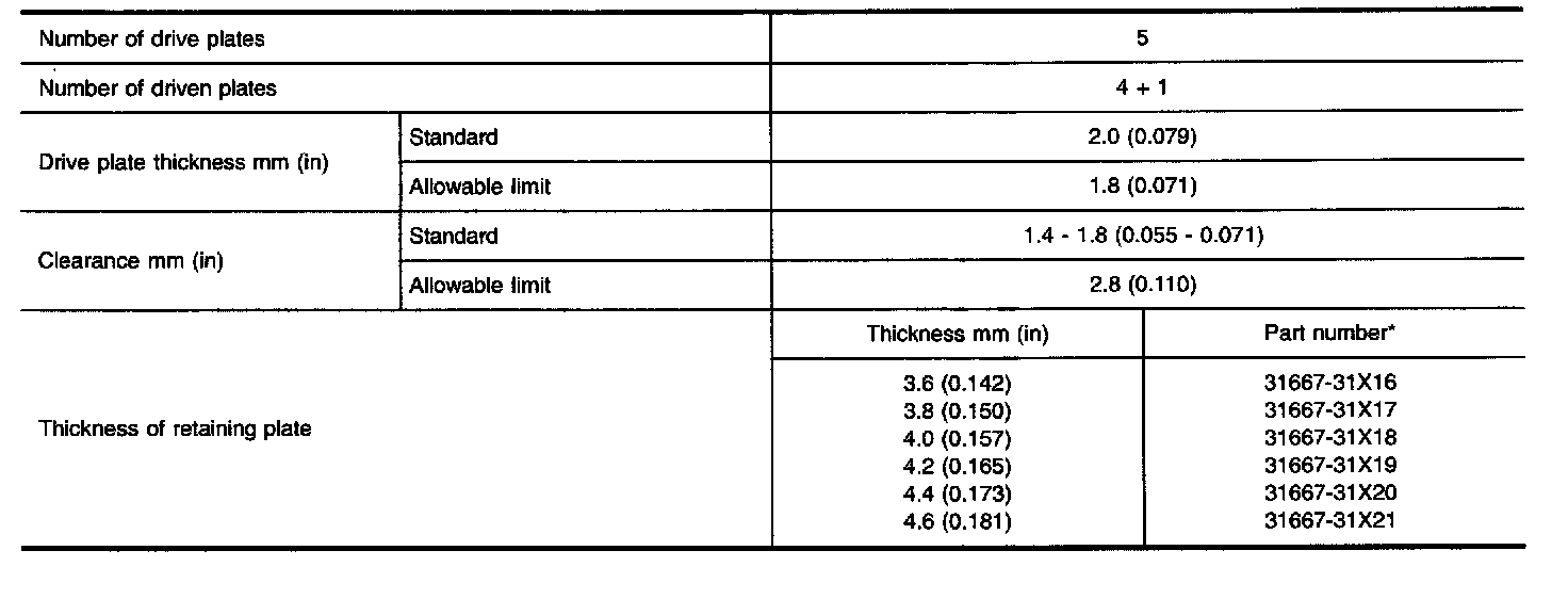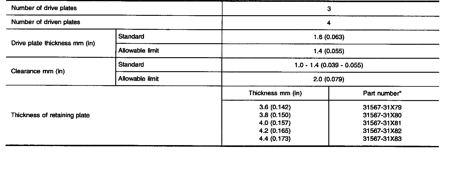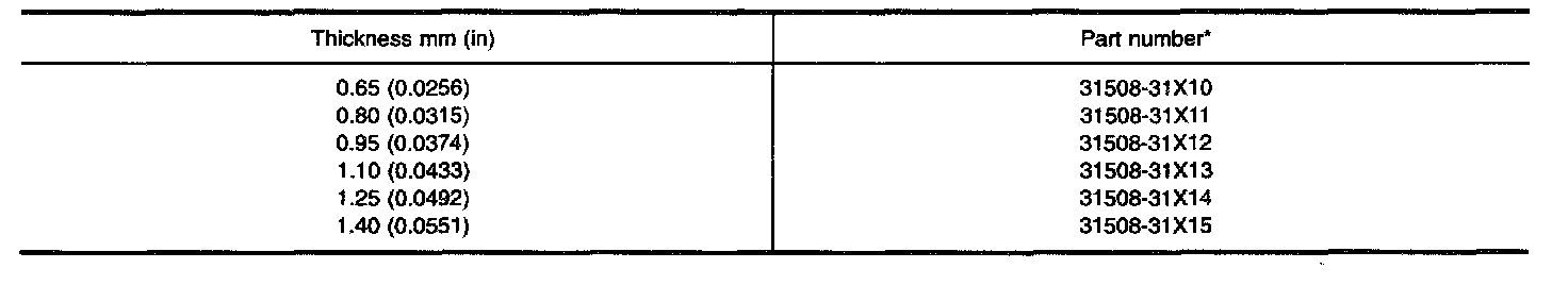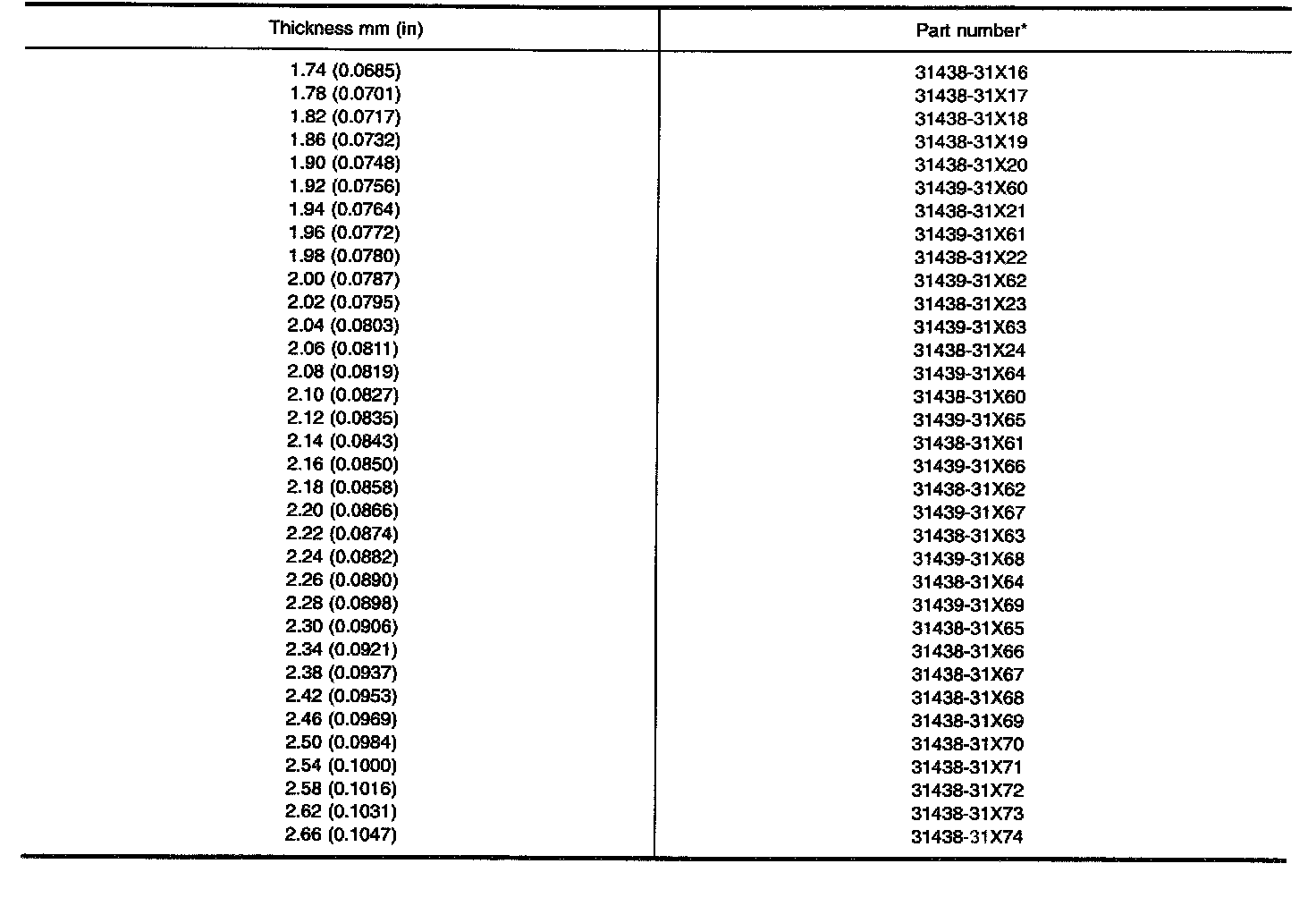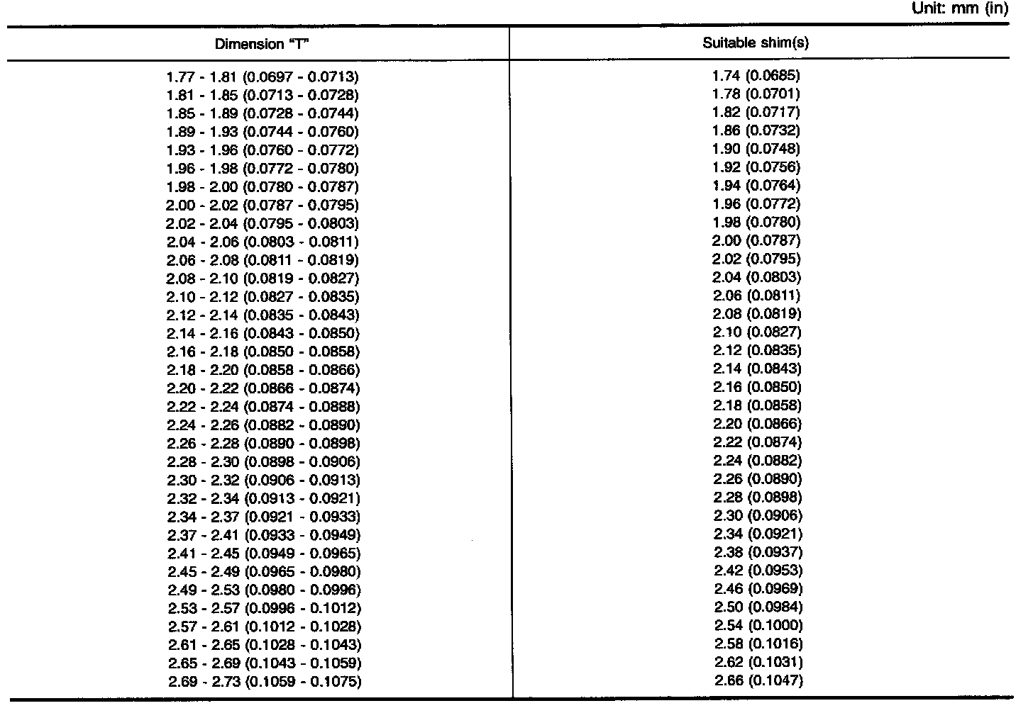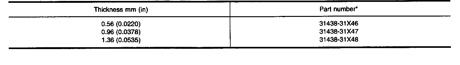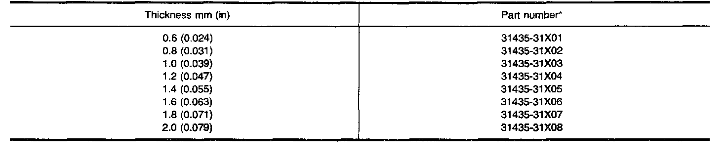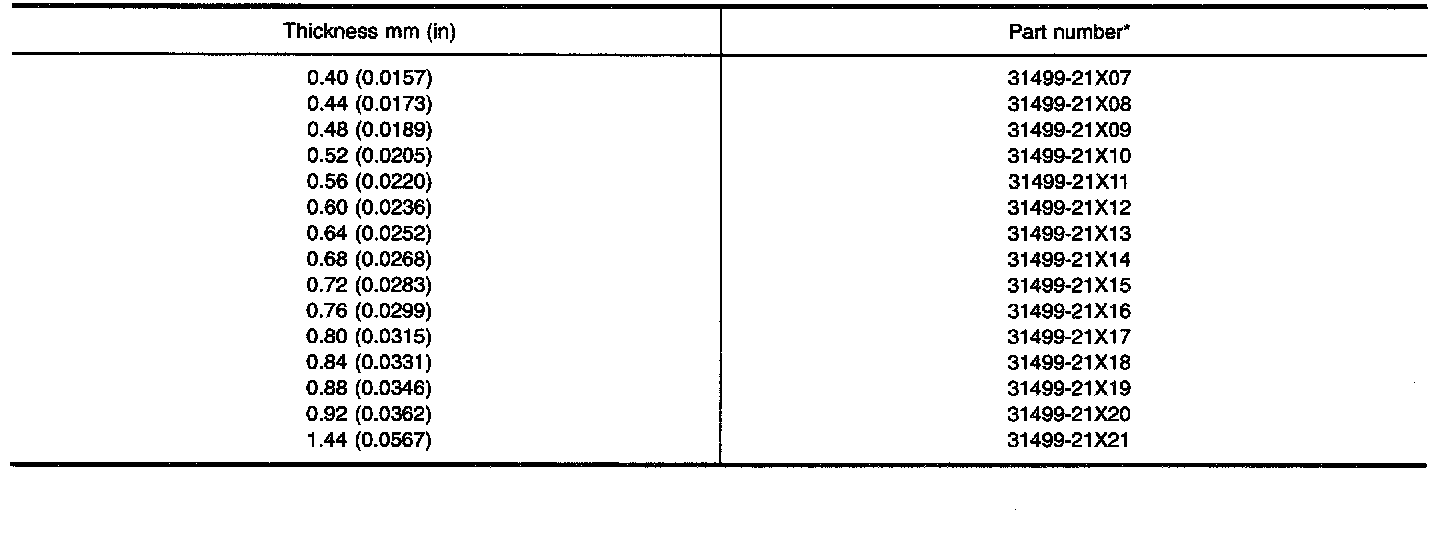 TABLE FOR SELECTING DIFFERENTIAL SIDE BEARING ADJUSTING SHIMS
