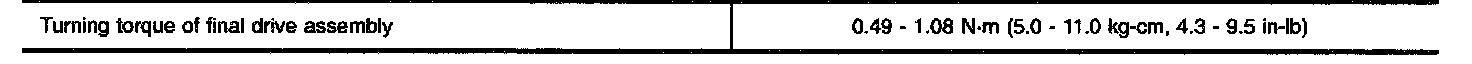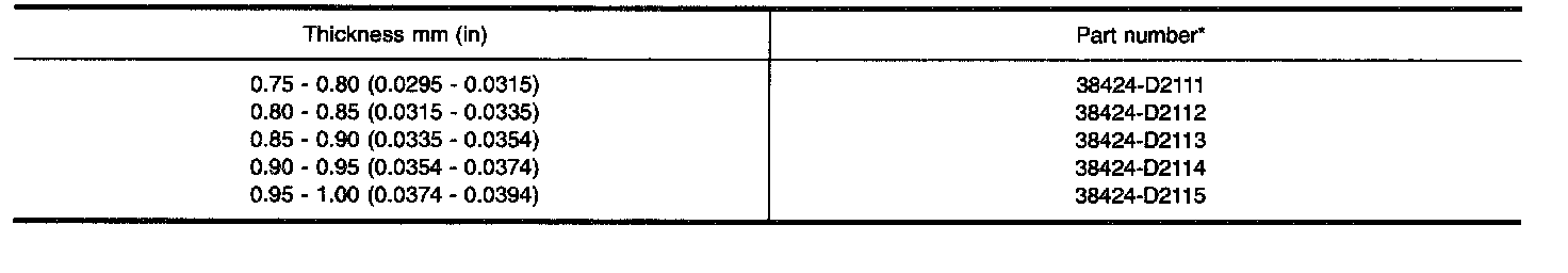 TABLE FOR SELECTING REDUCTION PINION GEAR BEARING ADJUSTING SHIM
