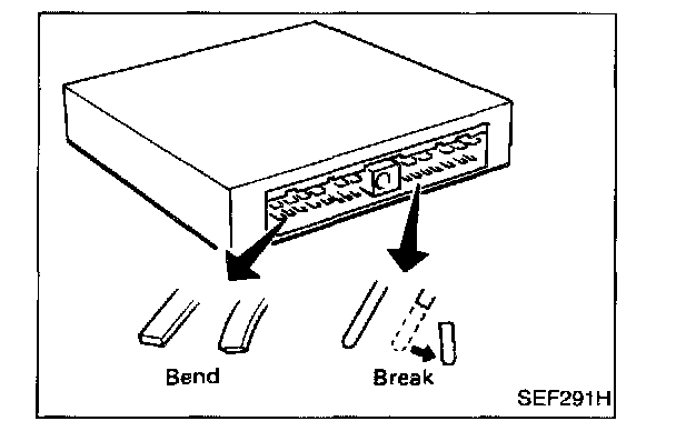 - When connecting or disconnecting pin connectors into or from ECM, take care not to damage pin terminals (bend or break).
