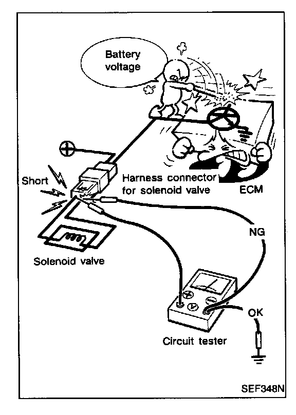 - Do not use ECM ground terminals when measuring input/output voltage. Doing so may result in damage to the ECM's power transistor. Use a ground other than ECM terminals, such as an engine ground.