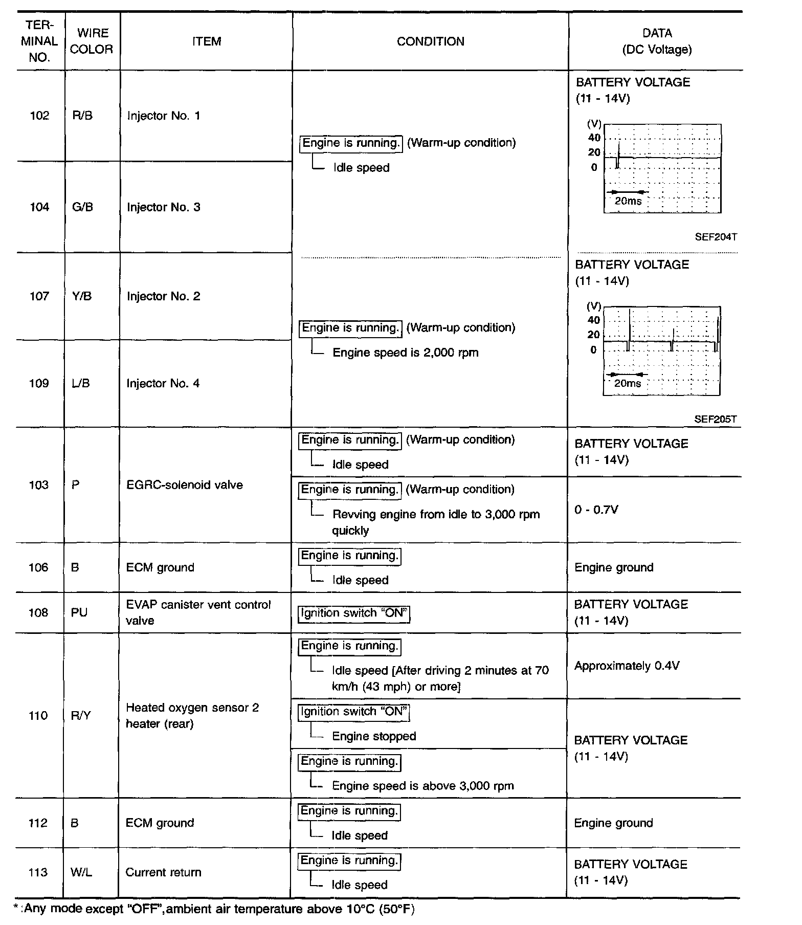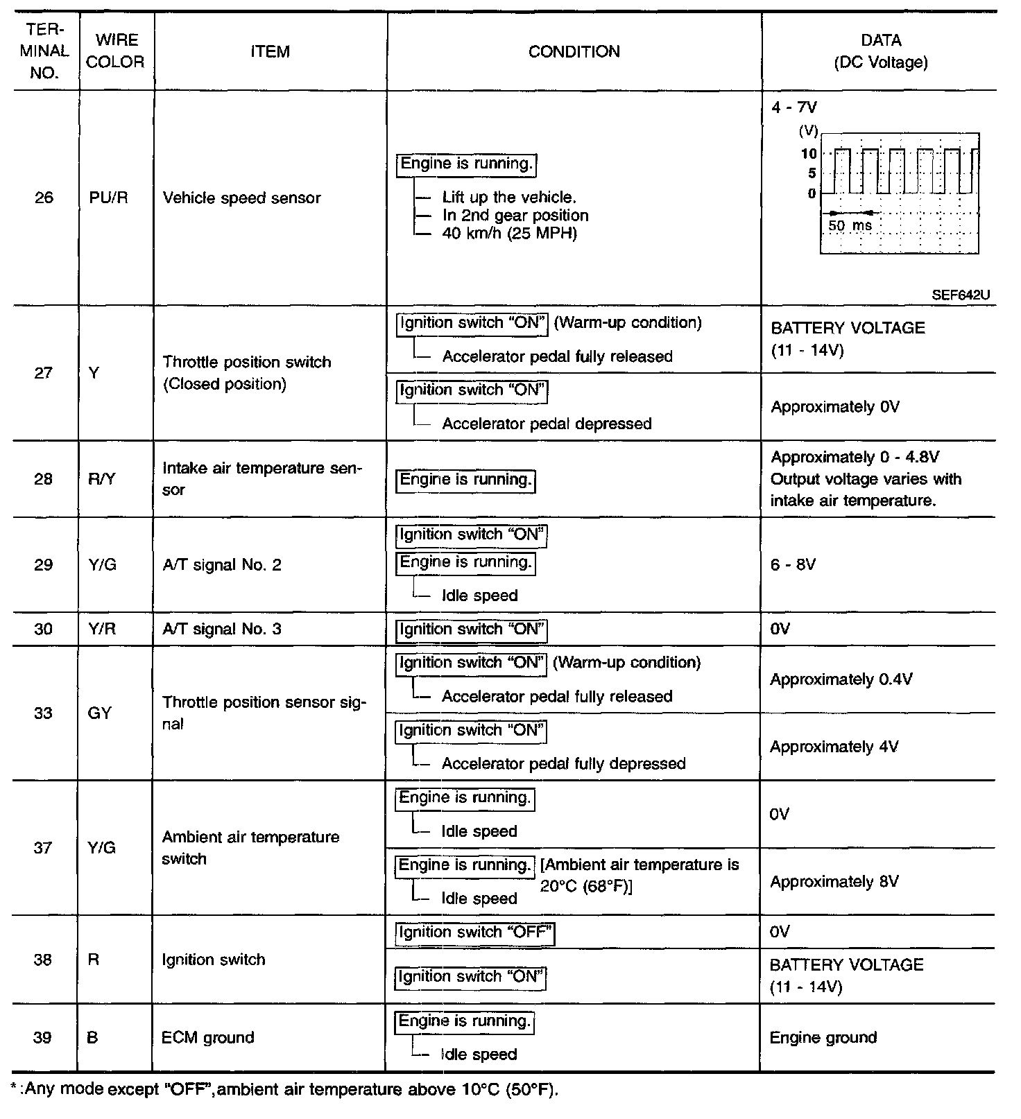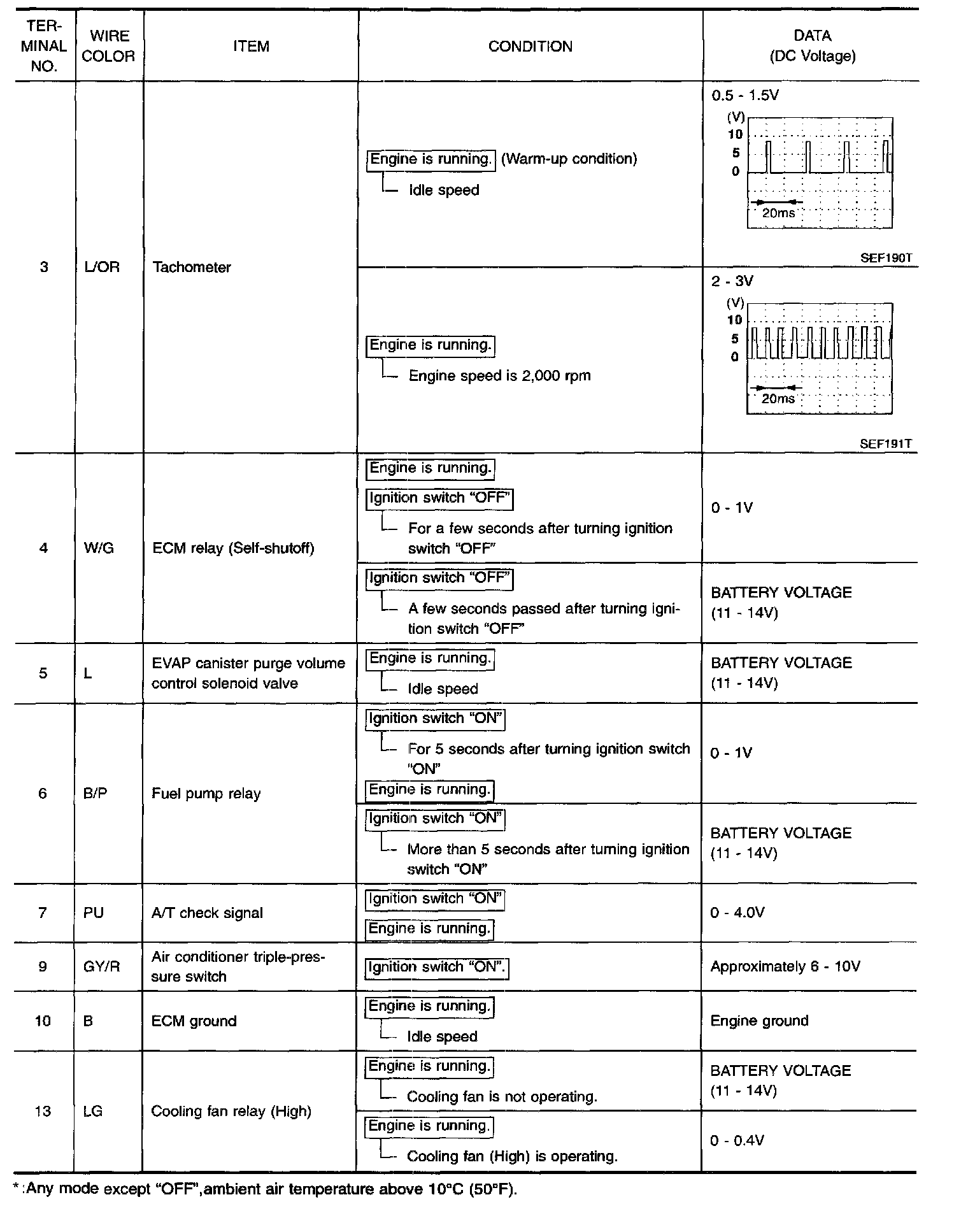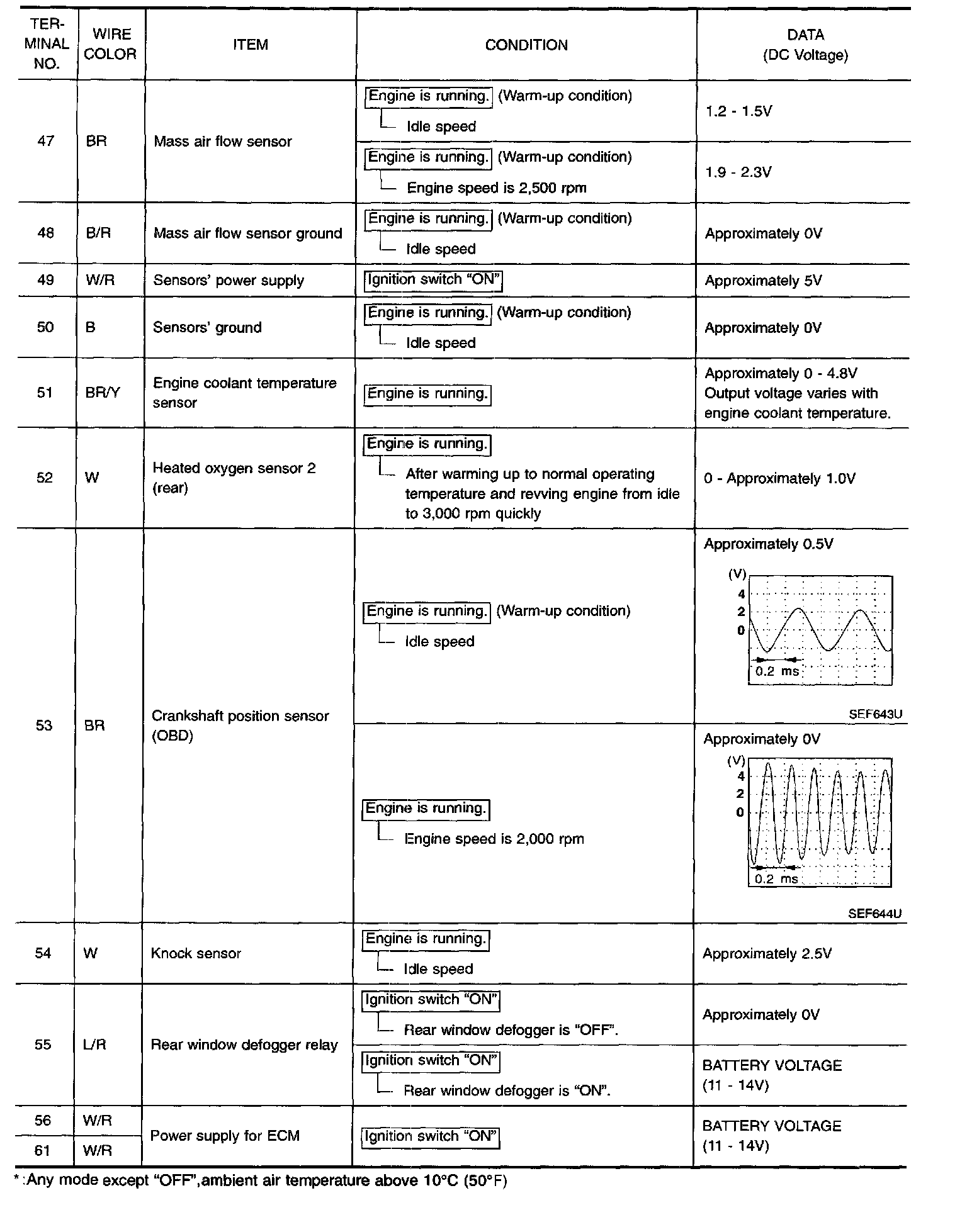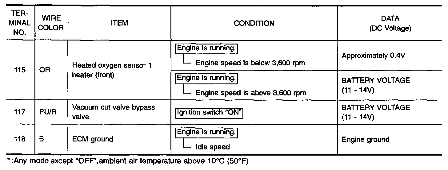 ECM Harness Connector Terminal Layout: