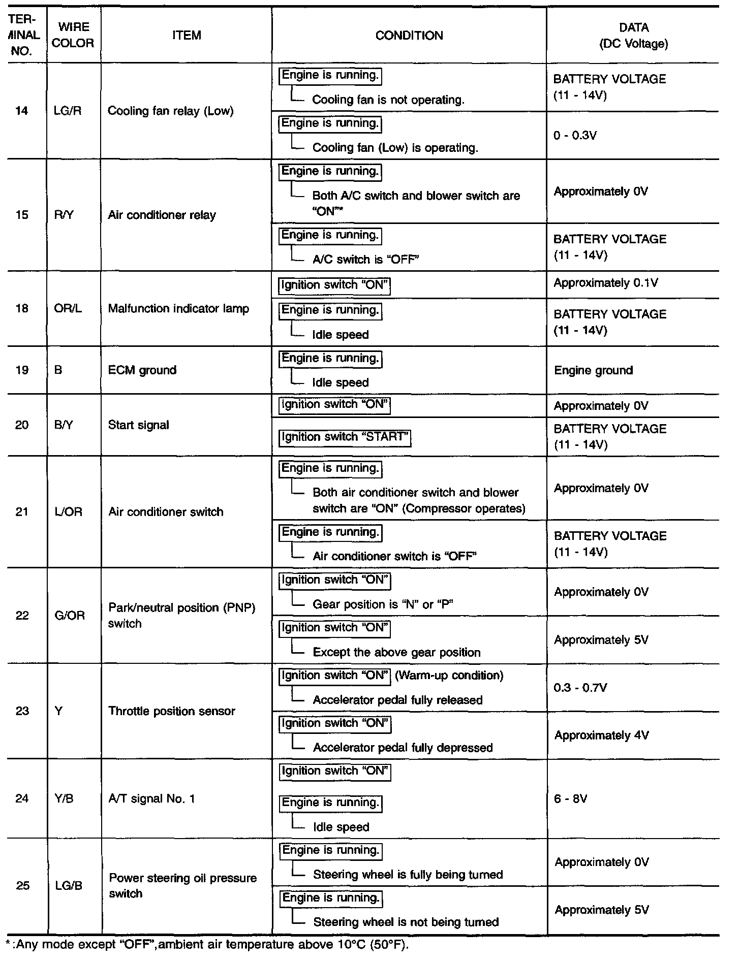 Terminals 14 - 25:
