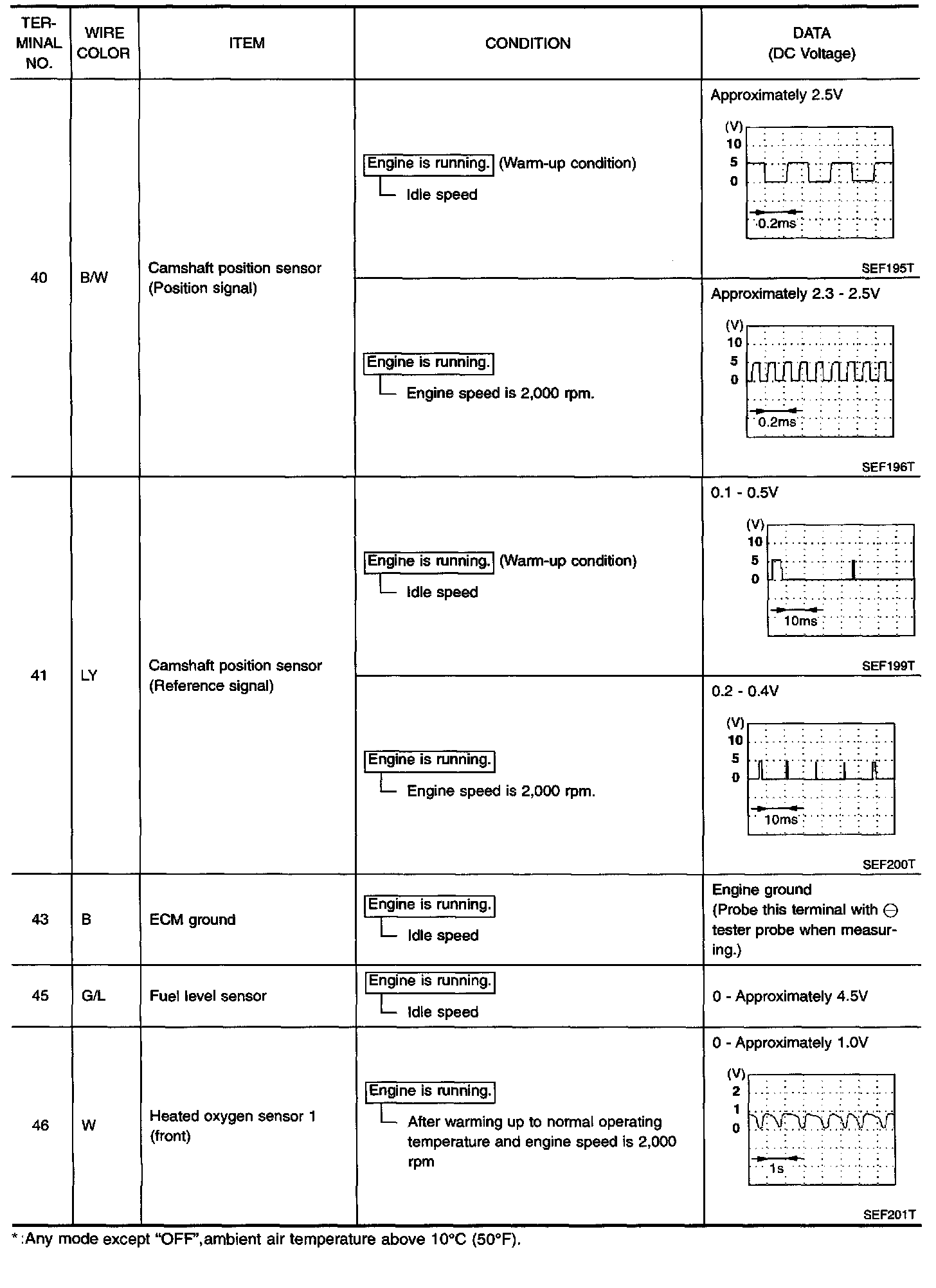 ECM INSPECTION TABLE