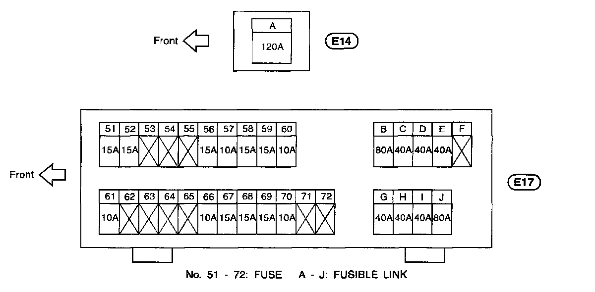 Fuse And Fusible Link Box - Terminal Arrangement (E14, E17):