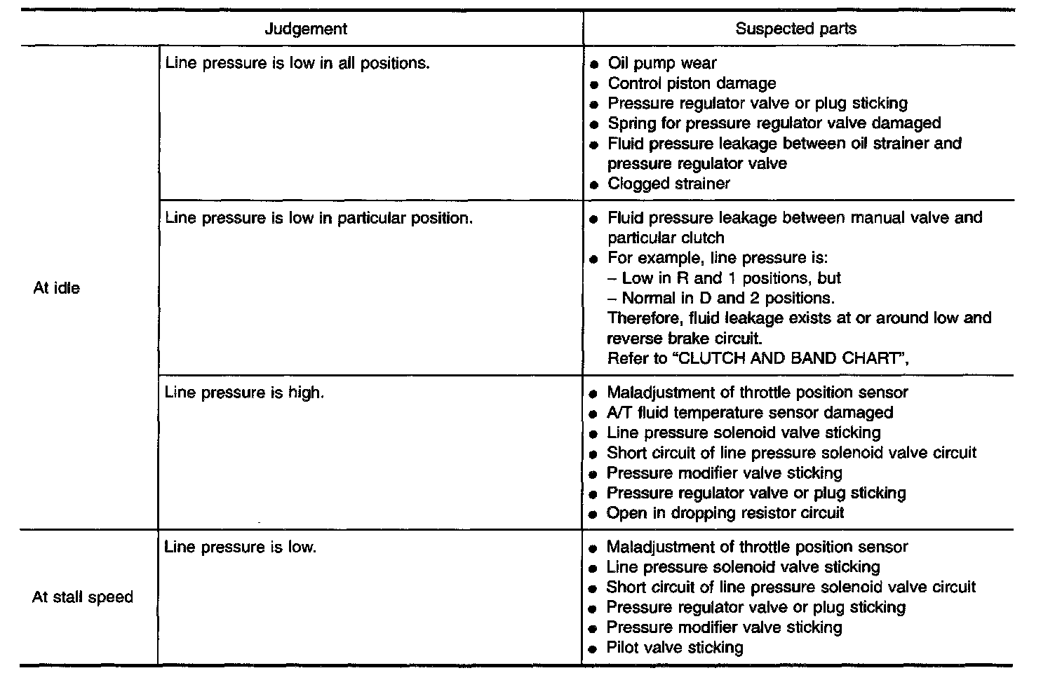 Line pressure: Refer to Automatic Transmission/Transaxle; Specifications.