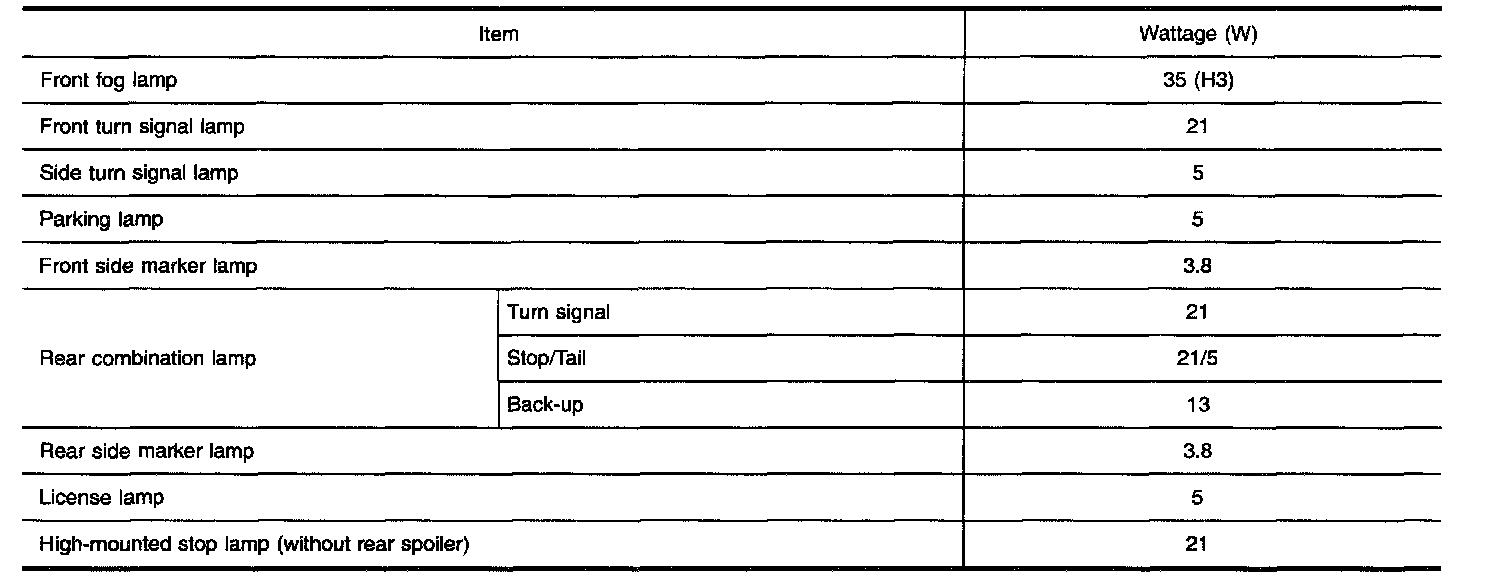 Bulb Specficiations - Exterior Lamp: