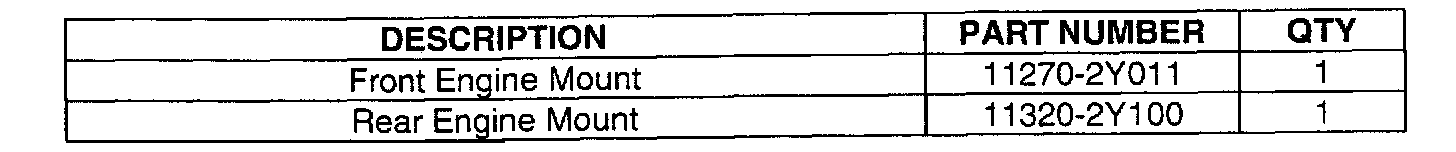 Use the date code example below to make sure your replacement engine mounts have a date code of September 4, 2000 or later. Replacement engine mounts with earlier dates should not be used.