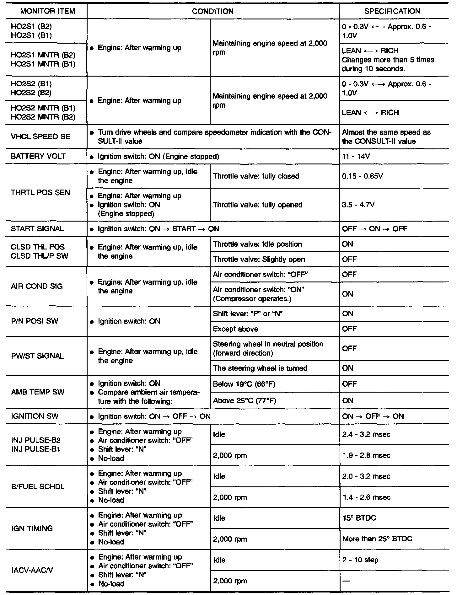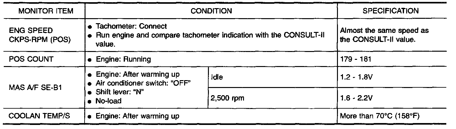 CONSULT-II Reference Value in Data Monitor Mode