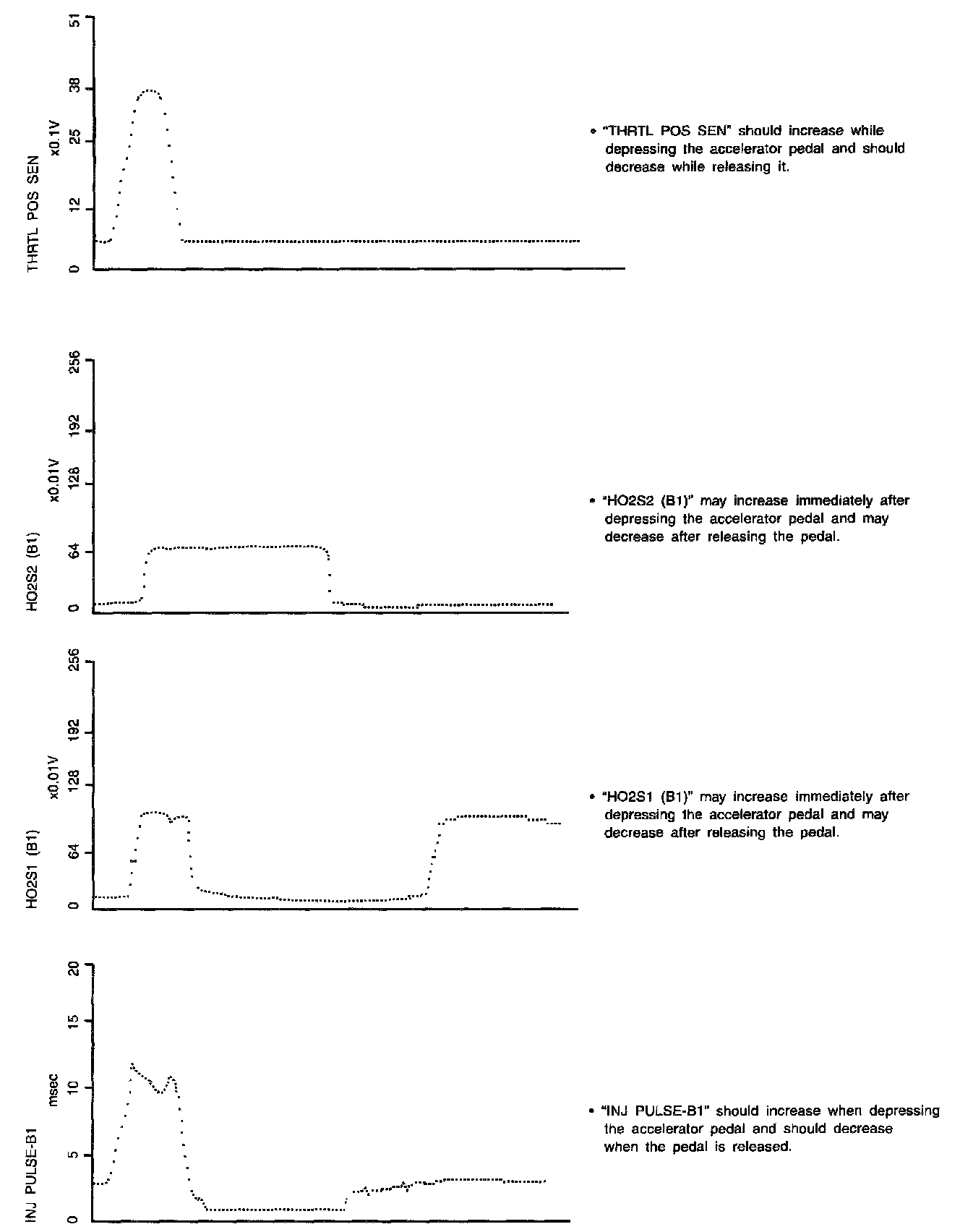 ENG SPEED, MAS A/F SE-B1, THRTL POS SEN, HO2S2 (B1), HO2S1 (B1), INJ PULSE-B1