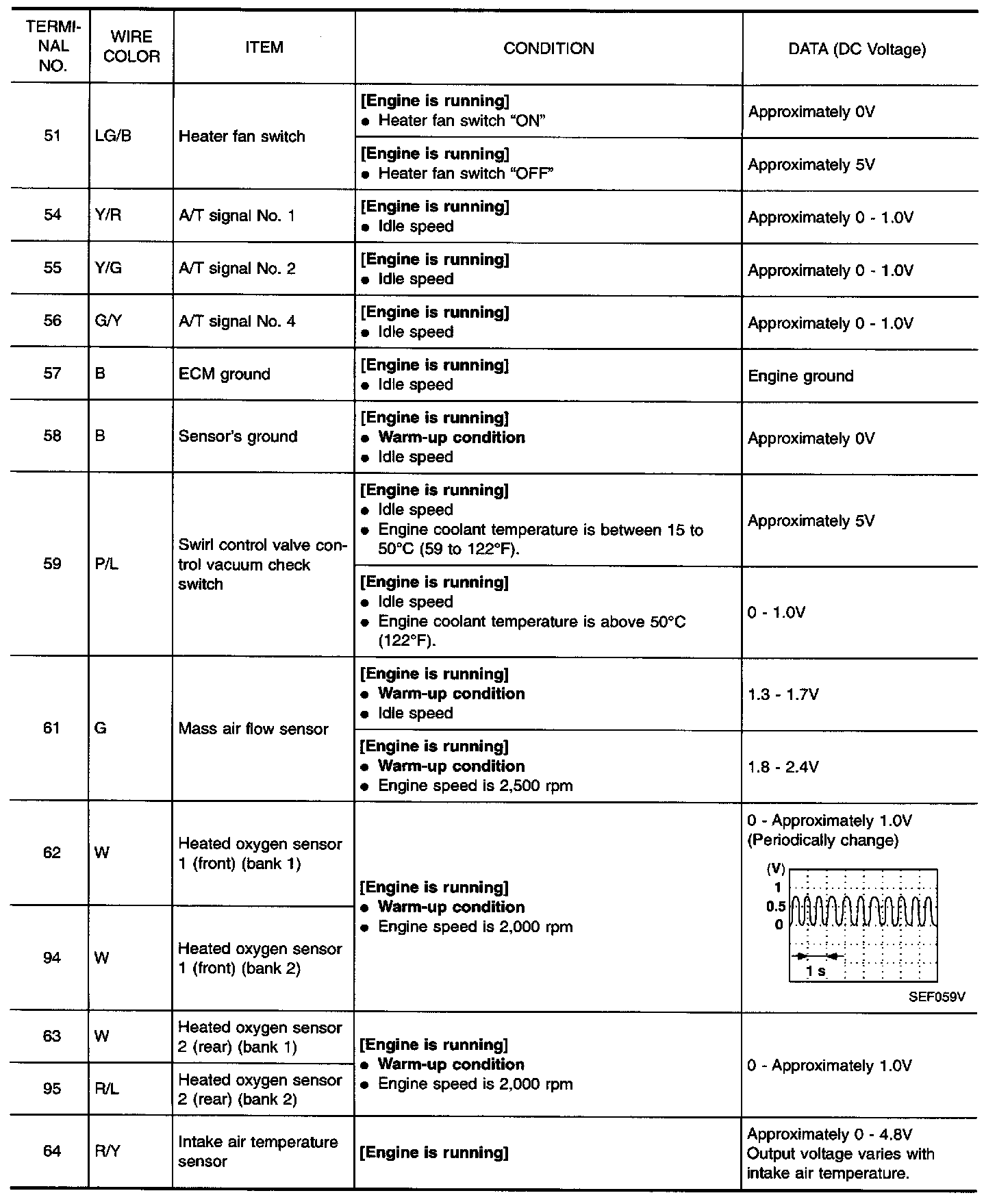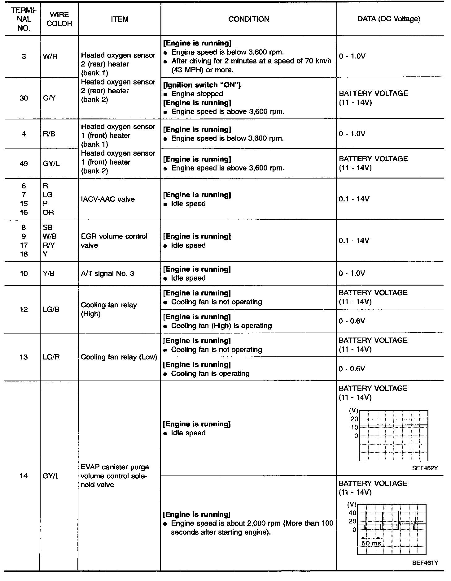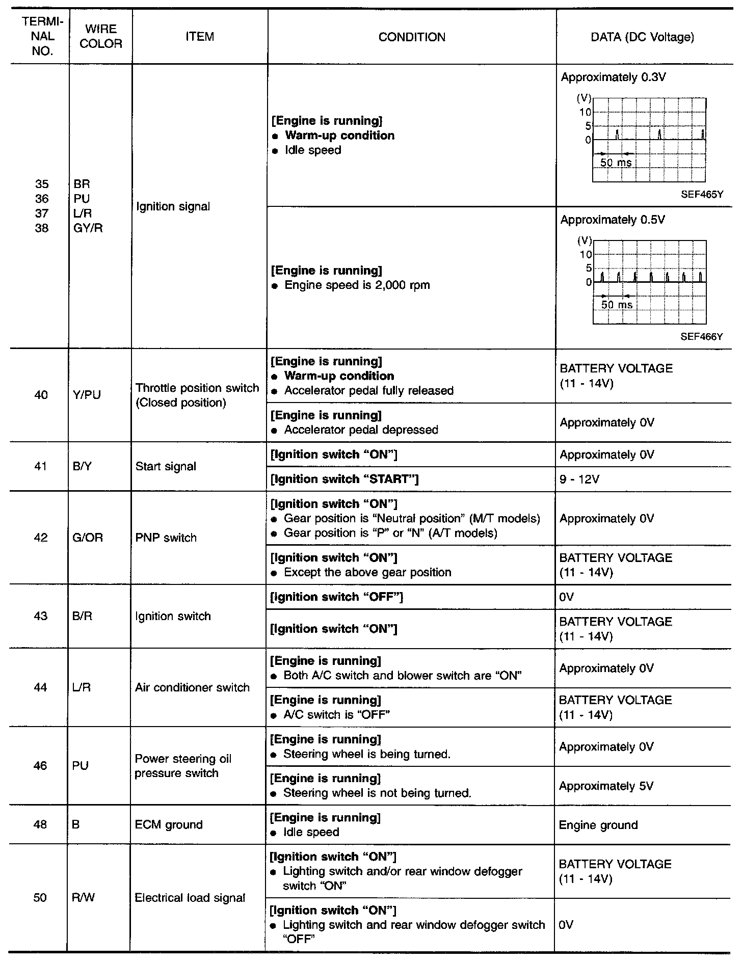 CAUTION: Do not use ECM ground terminals when measuring input/output voltage. Doing so may result in damage to the ECM's transistor. Use a ground other than ECM terminals, such as the ground.