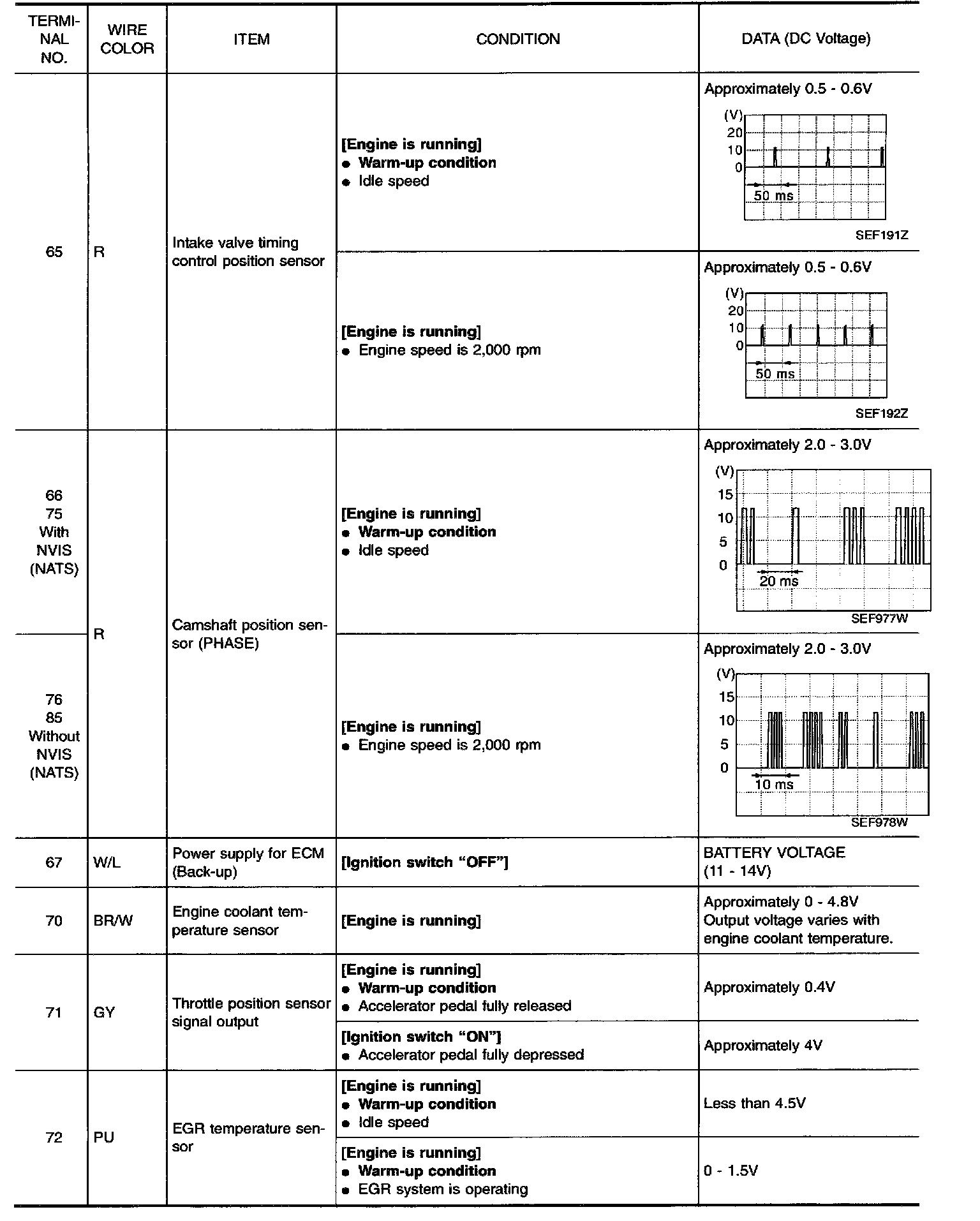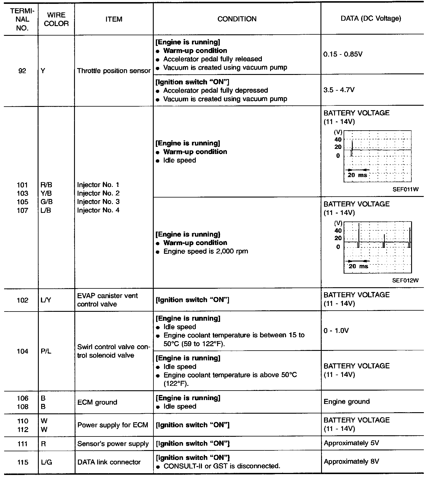 Specification data are reference values and are measured between each terminal and ground.