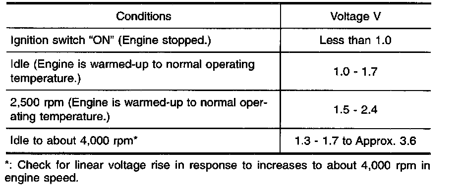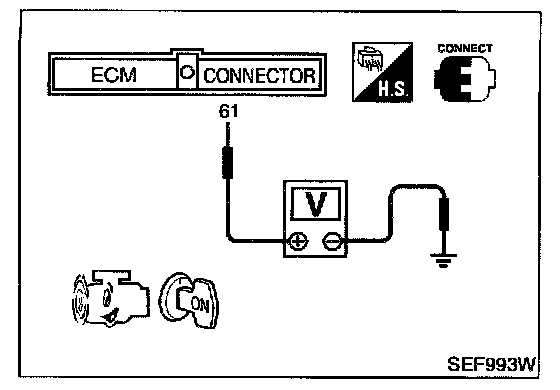 3. Check voltage between ECM terminal 61 (Mass air flow sensor signal) and ground.