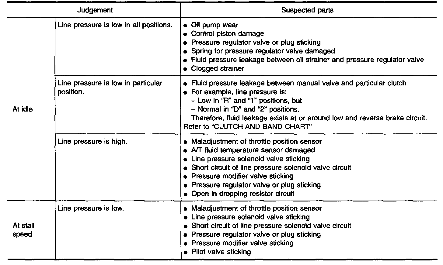 - When measuring line pressure at stall speed, follow the stall test procedure. Refer to "Line Pressure", under Automatic Transmission/Transaxle; Specifications.