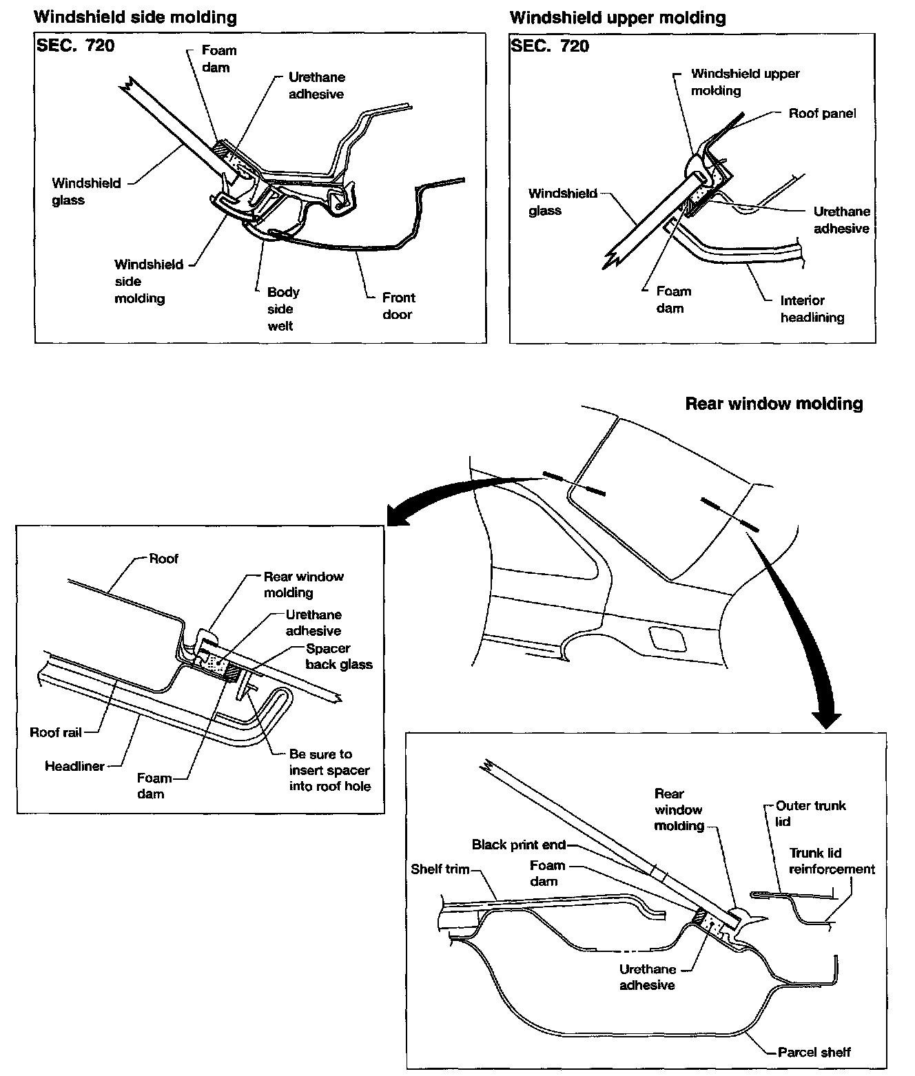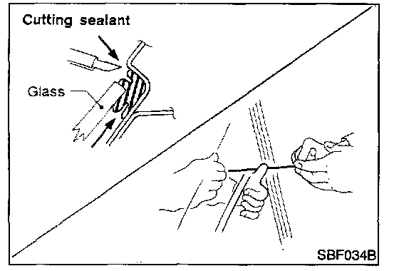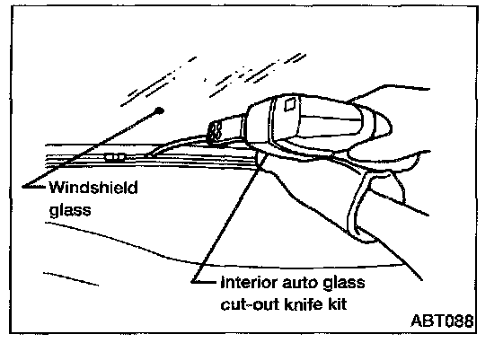 - Use genuine Nissan Urethane Adhesive Kit or equivalent and follow the instructions furnished with it.