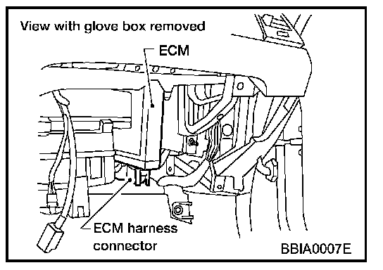 1. ECM is located behind the glove box. For this inspection, remove glove box.