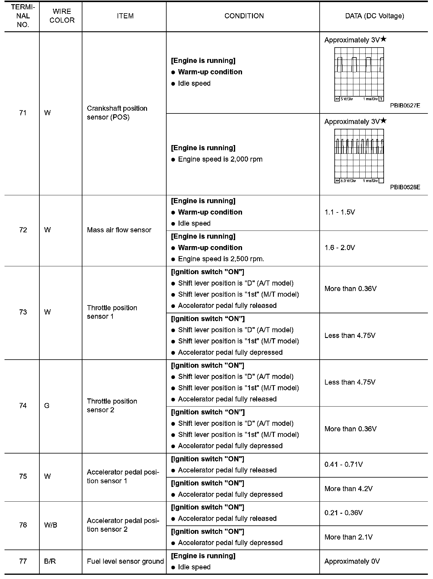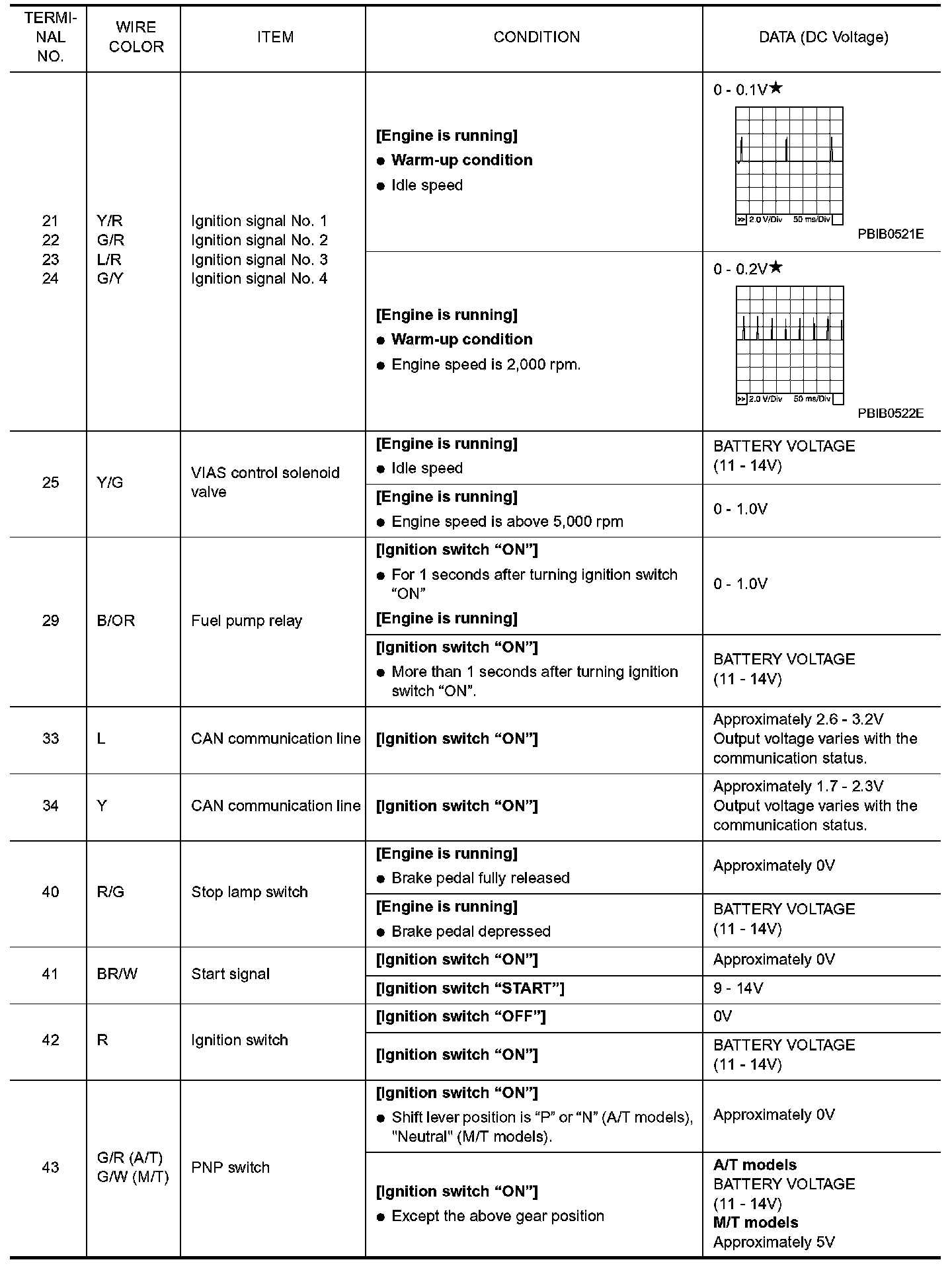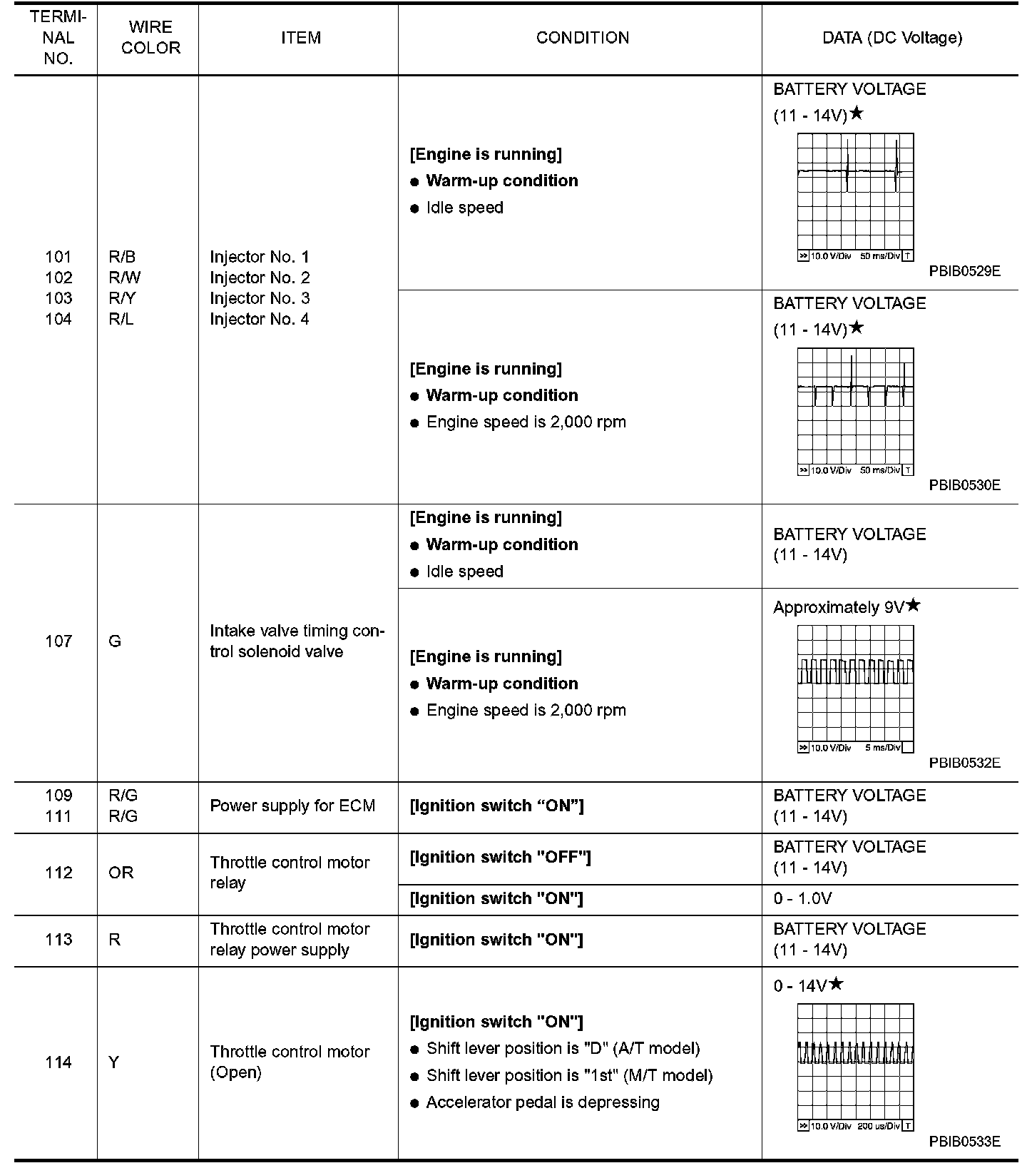 ECM Harness Connector Terminal Layout: