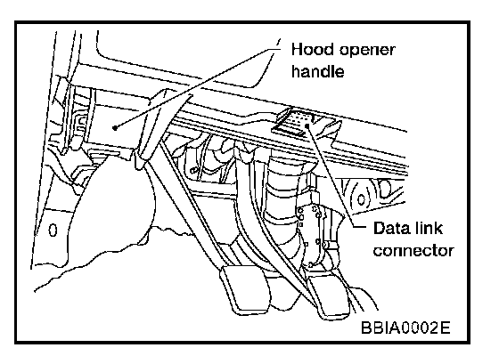 1. With ignition switch OFF, connect CONSULT-II to data link connector and turn ON ignition switch.