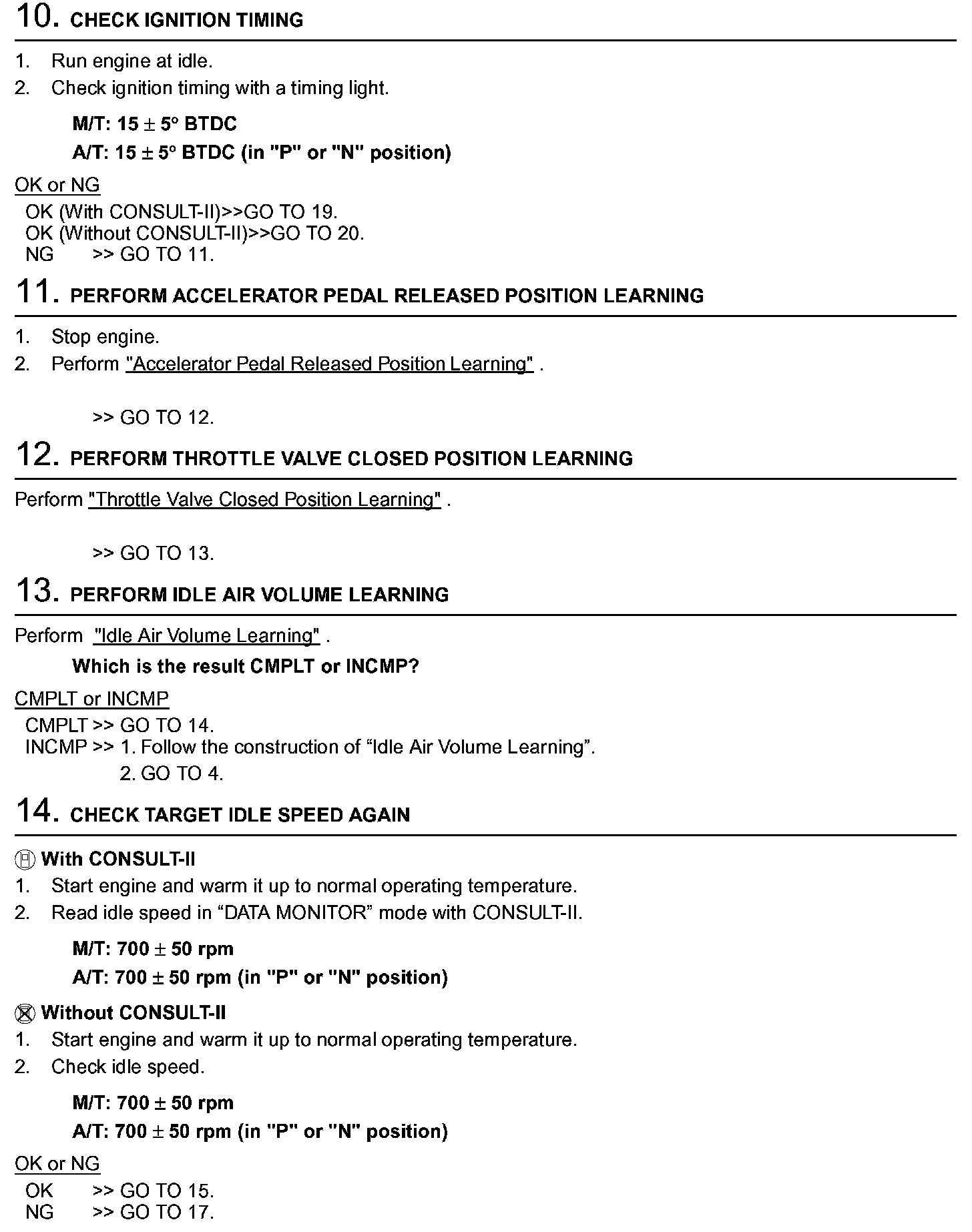 3. On automatic transmission equipped models, when checking idle rpm, ignition timing and mixture ratio, checks should be carried out while shift lever is in "N" position.