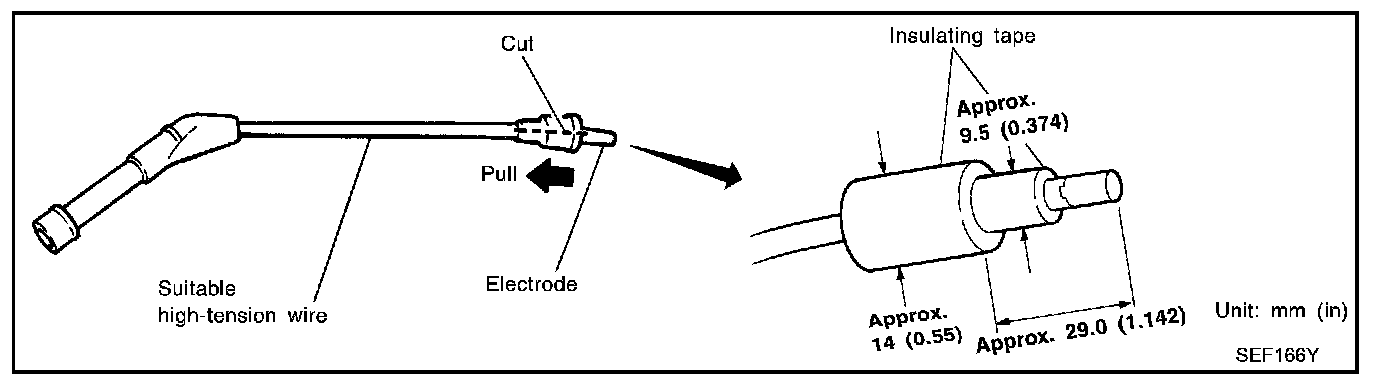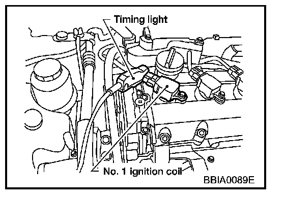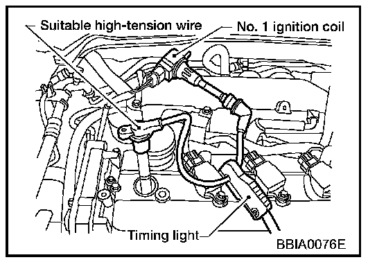 2. Connect No. 1 ignition coil and No. 1 spark plug with suitable high-tension wire as shown, and attach timing light clamp to this wire.