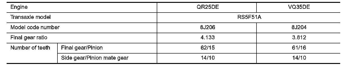 General SpecificationsTRANSAXLE