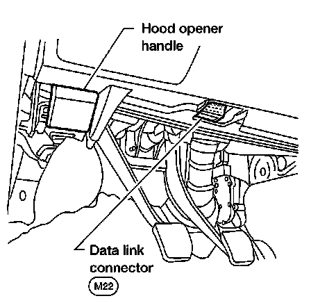 Hood Opener Handle, Data Link Connector: