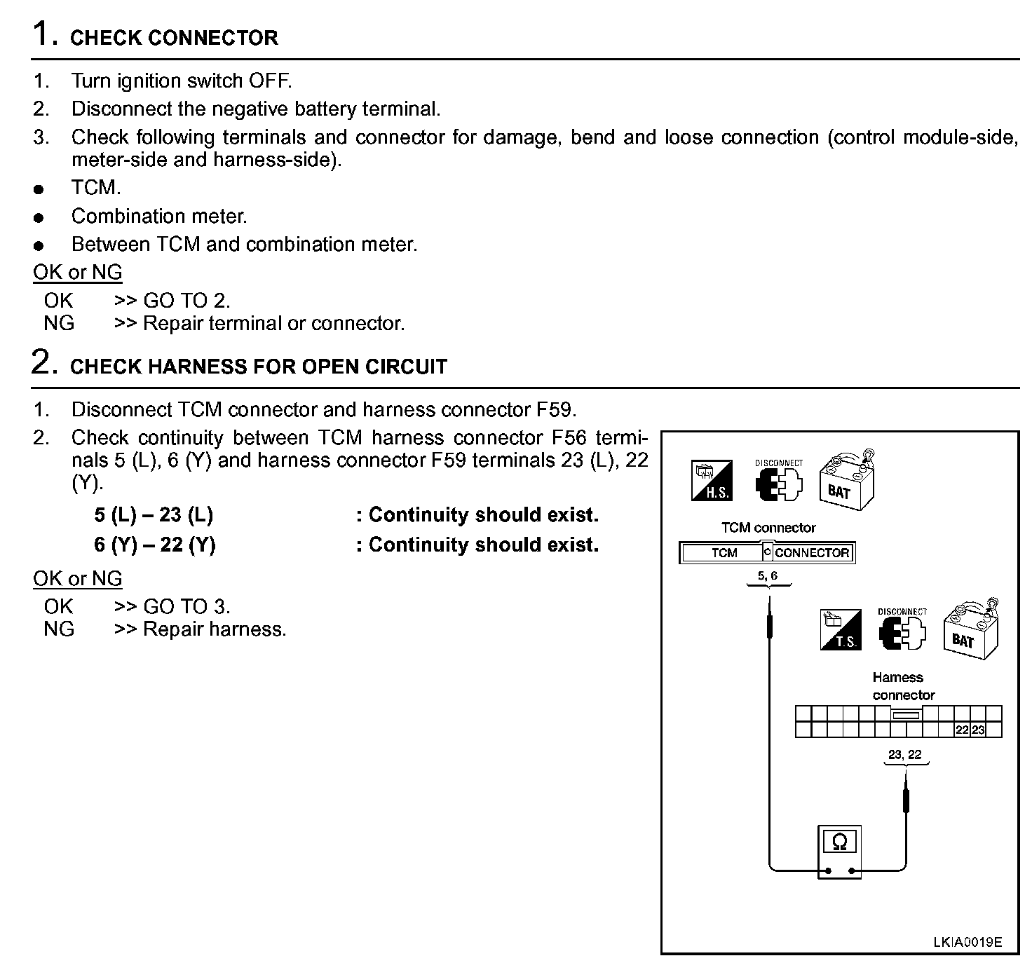 Circuit Check Between TCM And Combination Meter Step 1 - 2:
