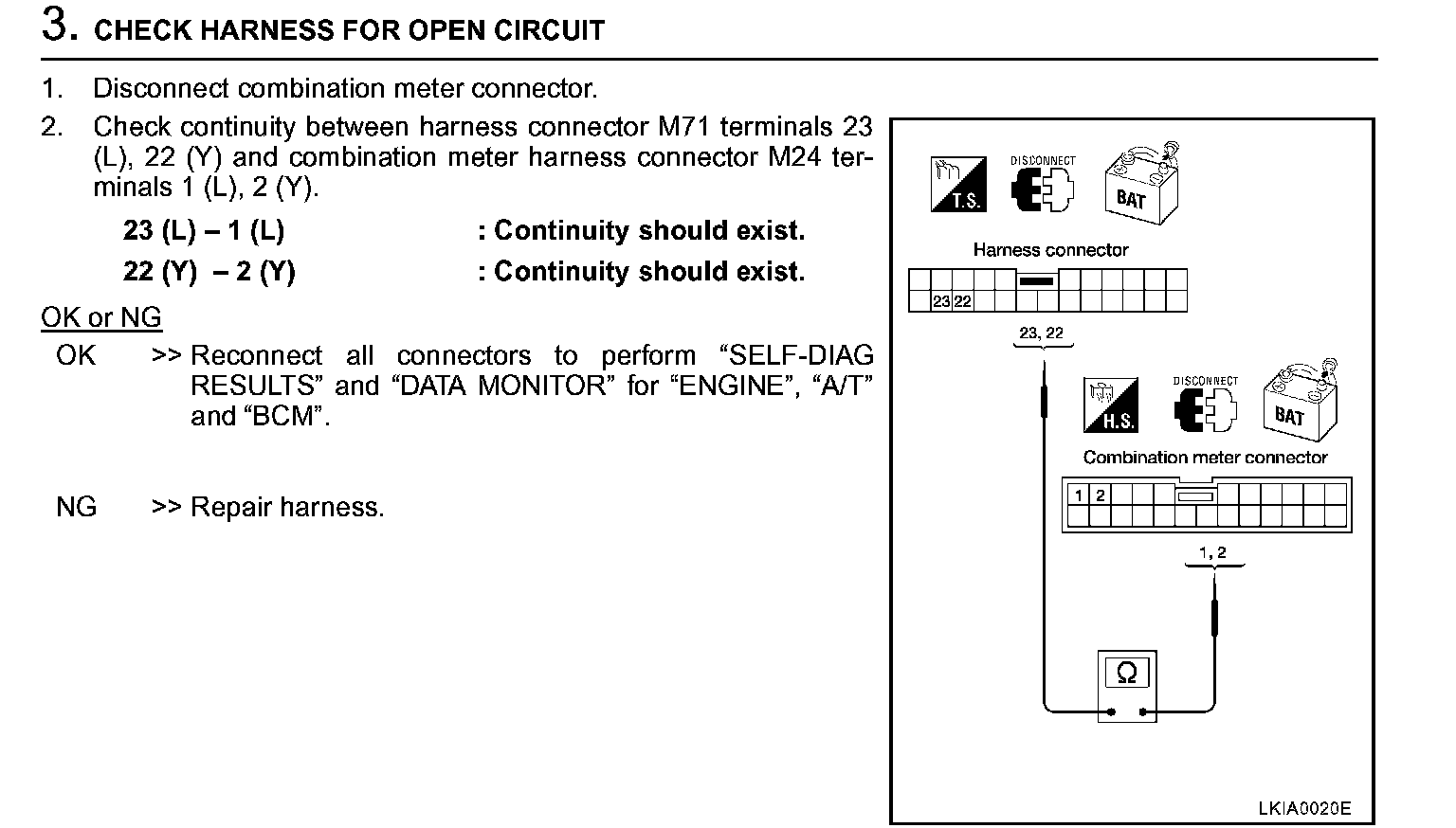 Circuit Check Between TCM And Combination Meter Step 3: