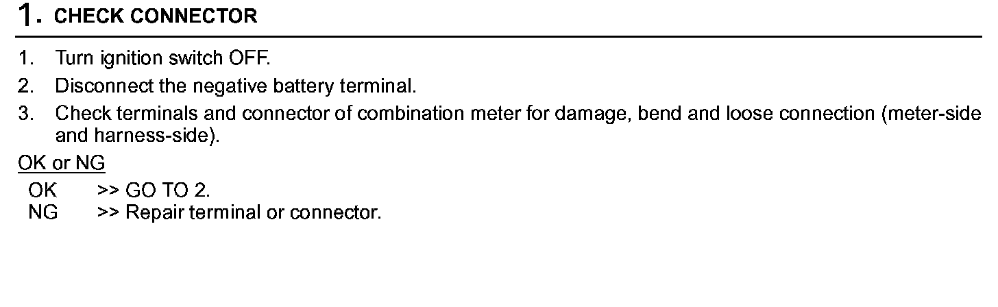 Combination Meter Circuit Check Step 1: