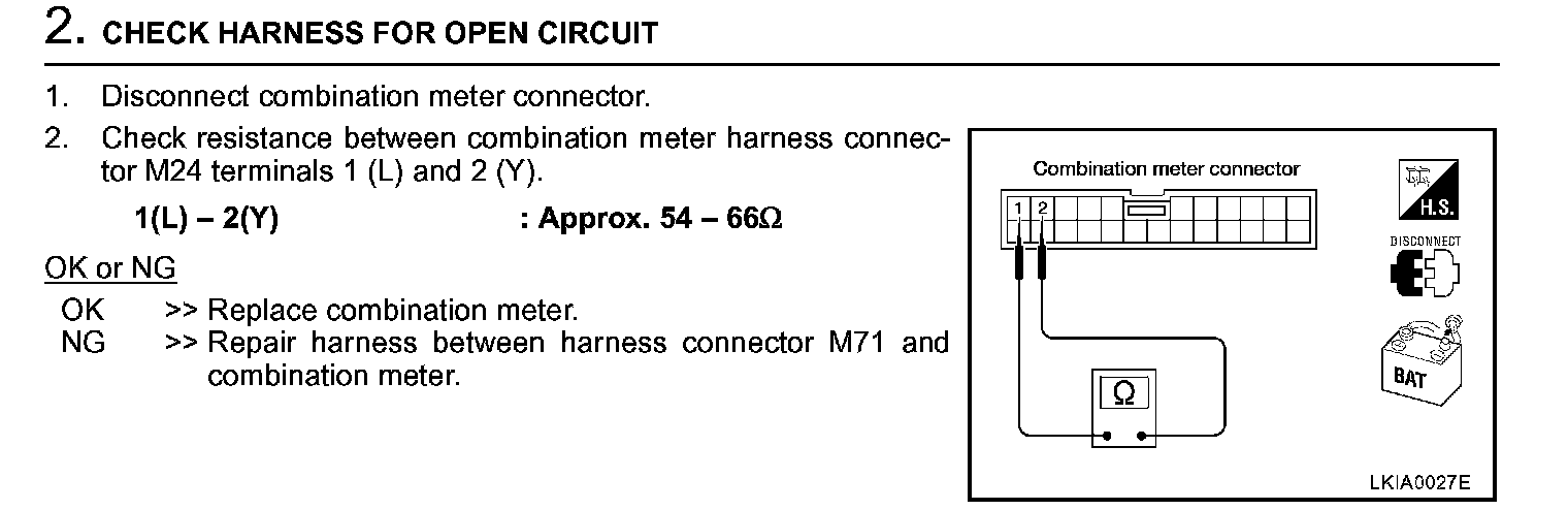 Combination Meter Circuit Check Step 2: