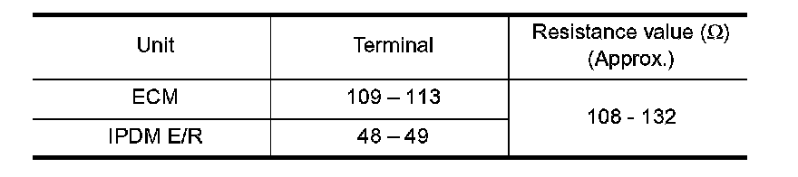 Check resistance between ECM terminals 109 and 113.
