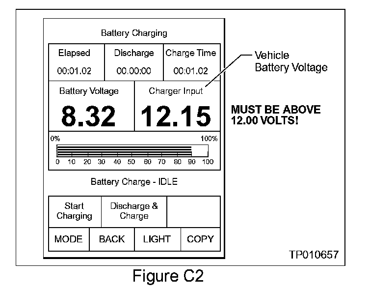 8. Connect a battery charger (or a "known good" additional 12V battery) to the vehicle battery (see Figure C4).