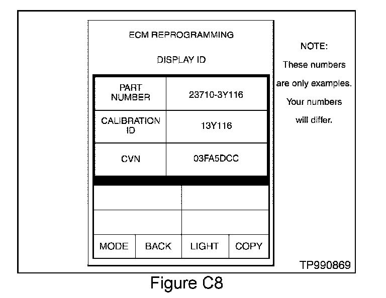 13. Press "CHECK ECM P/N" to confirm (take note of) the ECM part number on the vehicle to be reprogrammed (see Figure C8).