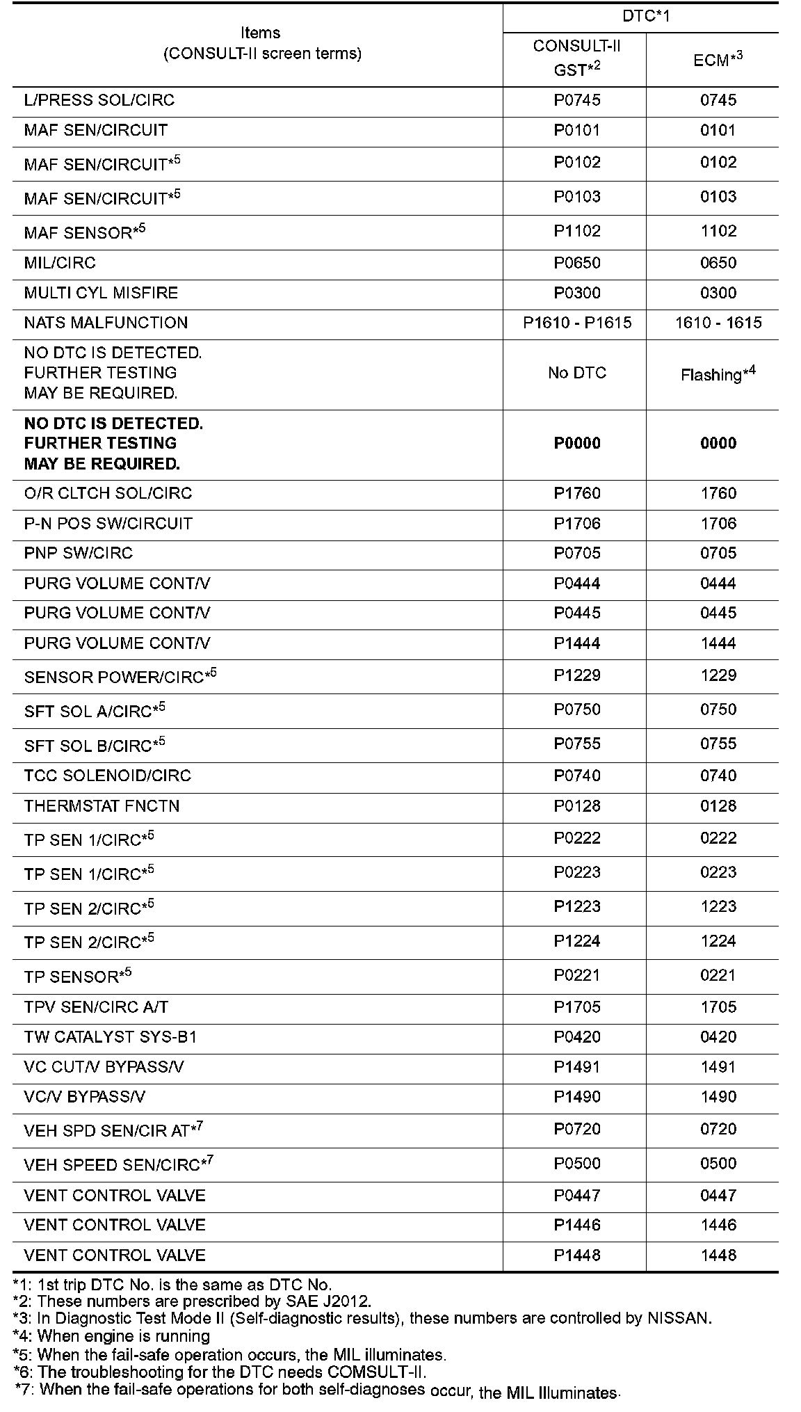 *6: The troubleshooting for this DTC needs CONSULT-II.