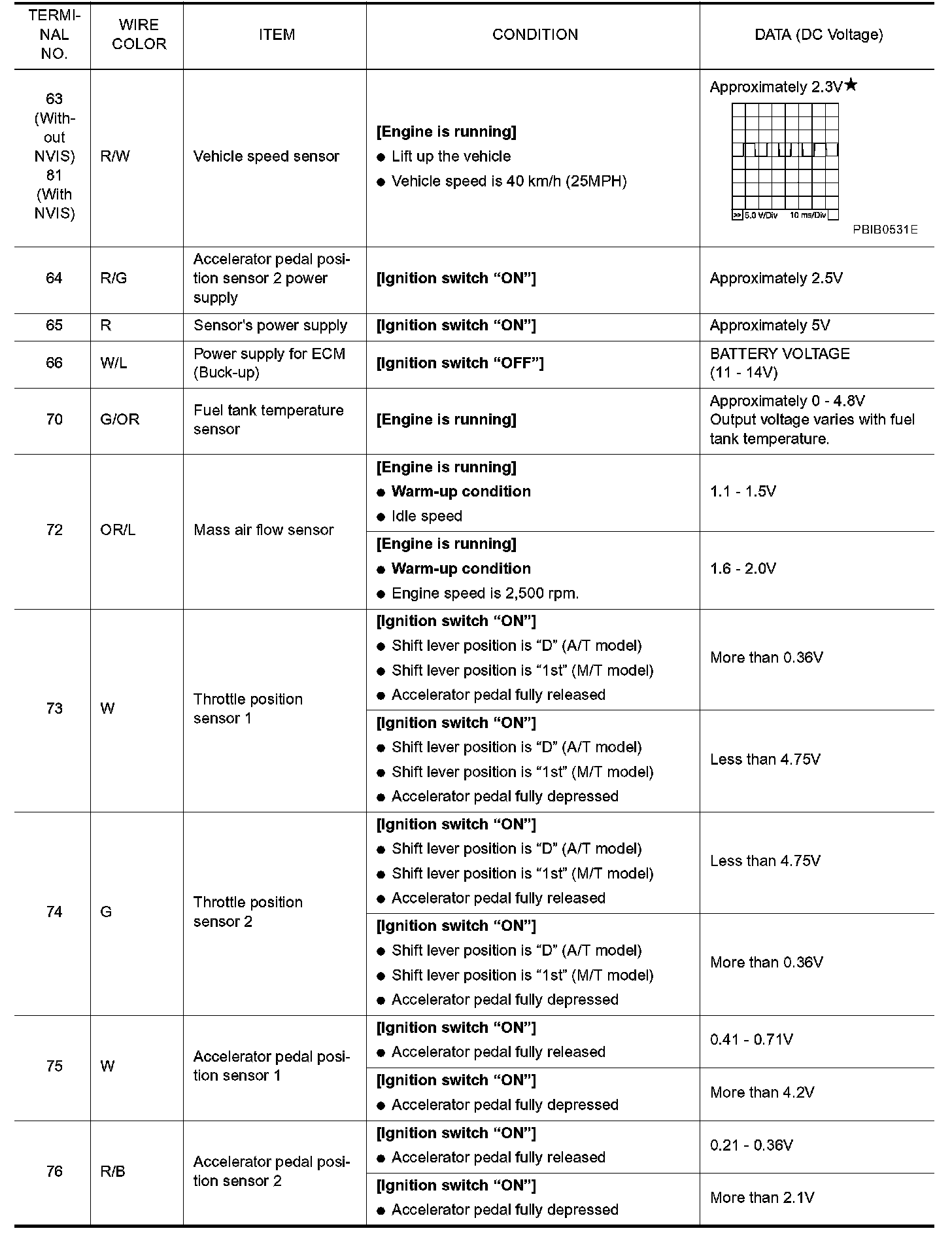 ECM Harness Connector Terminal Layout:
