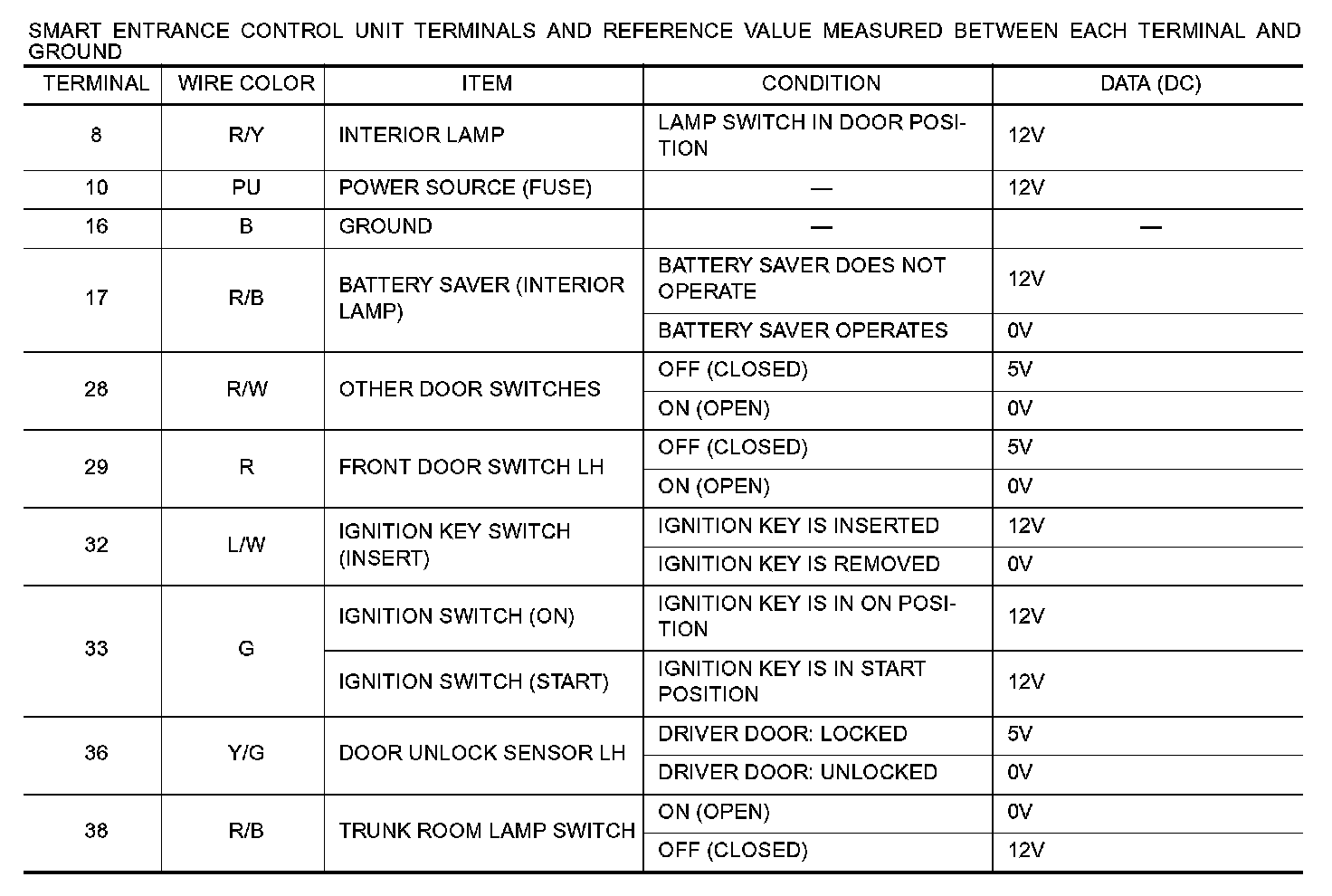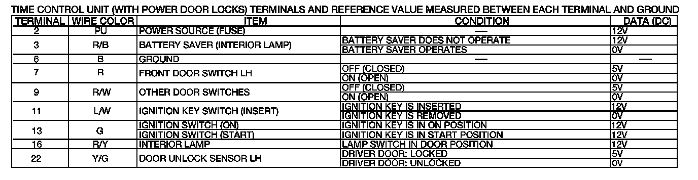 Time Control Unit (With Power Door Locks) Terminals And Reference Value: