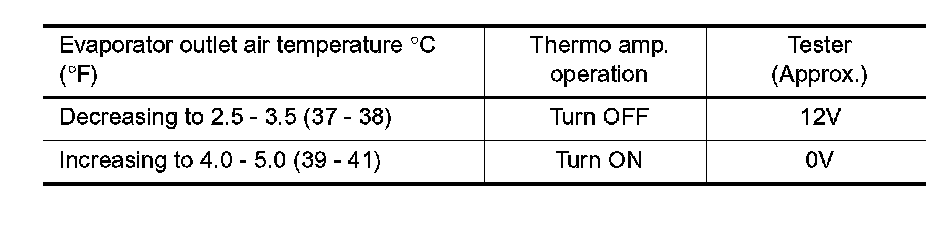 Check thermo control amp. operation shown in the table.