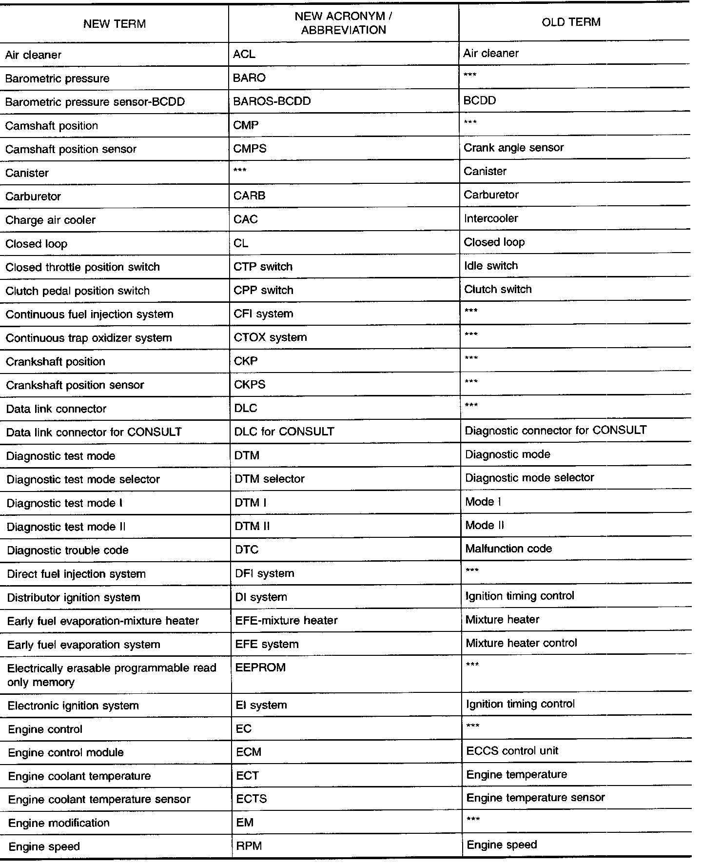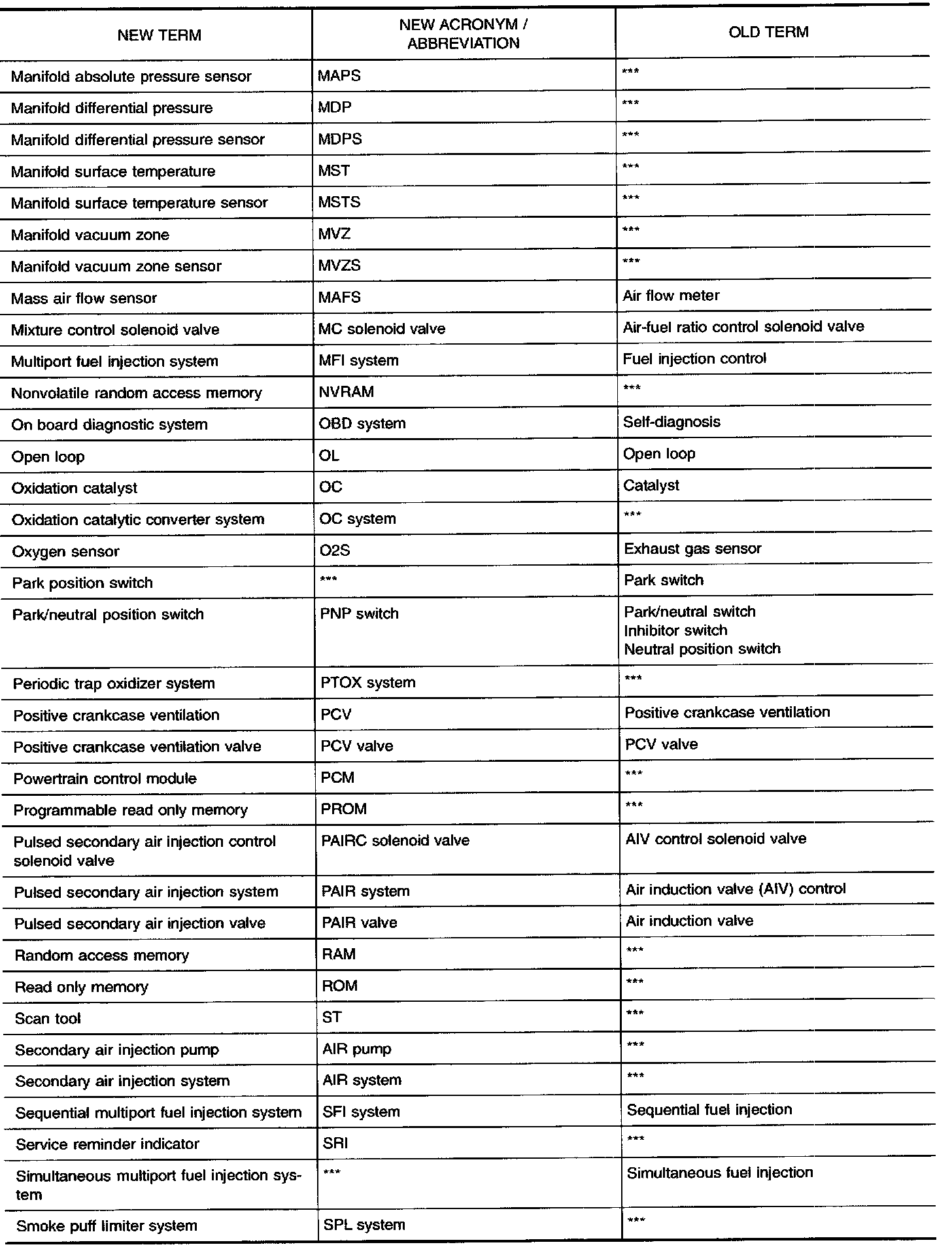 SAE J1930 Terminology ListAll emission related terms used in this publication in accordance with SAE J1930 are listed. Accordingly, new terms, new acronyms/abbreviations and old terms are listed in the chart.