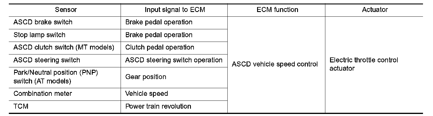 Automatic Speed Control Device (ASCD) allows a driver to keep vehicle at predetermined constant speed without depressing accelerator pedal. Driver can set vehicle speed in advance between approximately 40 km/h (25 MPH) and 144 km/h (89 MPH).