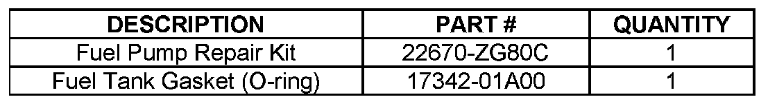 Install the Fuel Pump Repair Kit (listed in the Parts Information section).