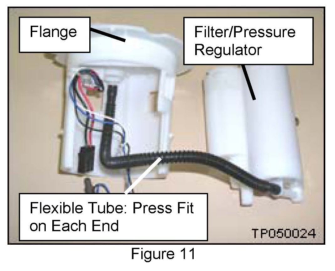12. Once the fuel pump bracket and fuel pump have been removed, discard the flange and the filter/pressure regulator.
