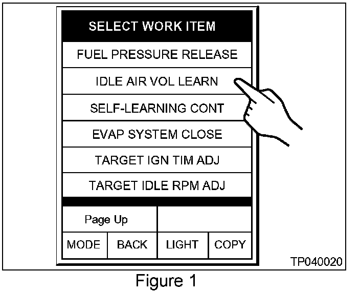 8. In the [CONSULT WORK SUPPORT] mode, select [IDLE AIR VOL LEARN]. See Figure 1.