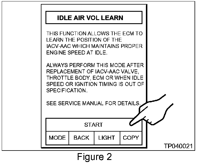 9. Press [START] on the "IDLE AIR VOL LEARN" screen. See Figure 2.