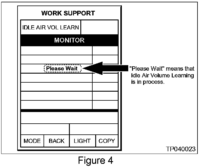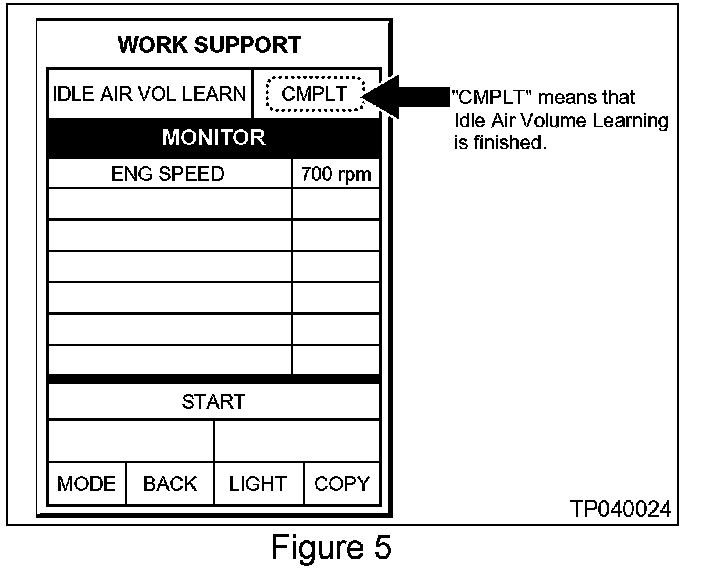 ^ If the IAVL does not finish ("CMPLT"), perform the "Corrected Idle RPM Check". Then, perform the IAVL procedure again.