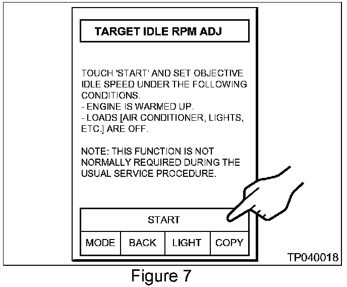 2. Press [START] on the [TARGET IDLE RPM ADJ] screen. See Figure 7.